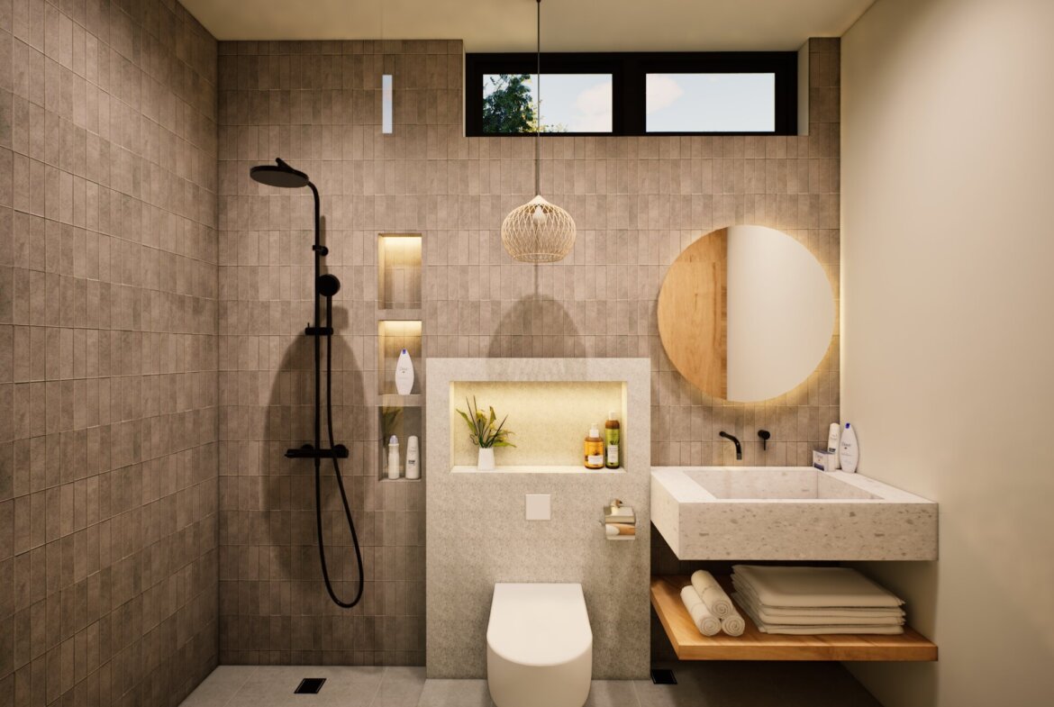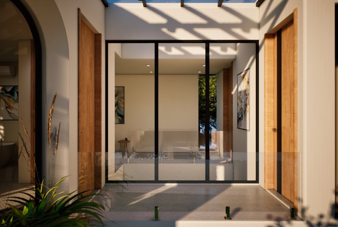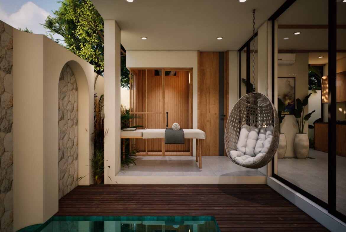 At the heart of the villa is a 3m x 7m private pool, perfect for cooling off in the heat or entertaining friends and family. Surrounding the pool, carefully selected finishes and landscaping create a stylish, serene outdoor setting. Each villa also includes a fully equipped kitchen with modern appliances, a steam room for wellness and relaxation, and a utility room for added convenience.