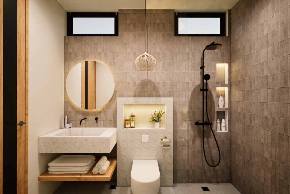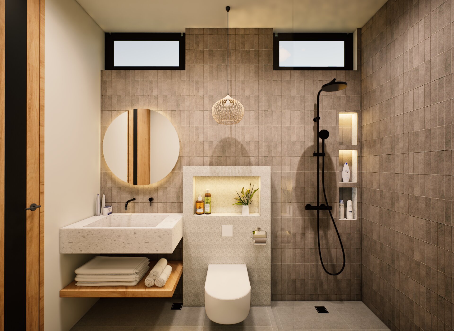 Both bedrooms are spacious and come with modern ensuite bathrooms, offering a private retreat for family or guests. The interiors combine contemporary finishes with subtle tropical touches, creating a calm and elegant atmosphere throughout.