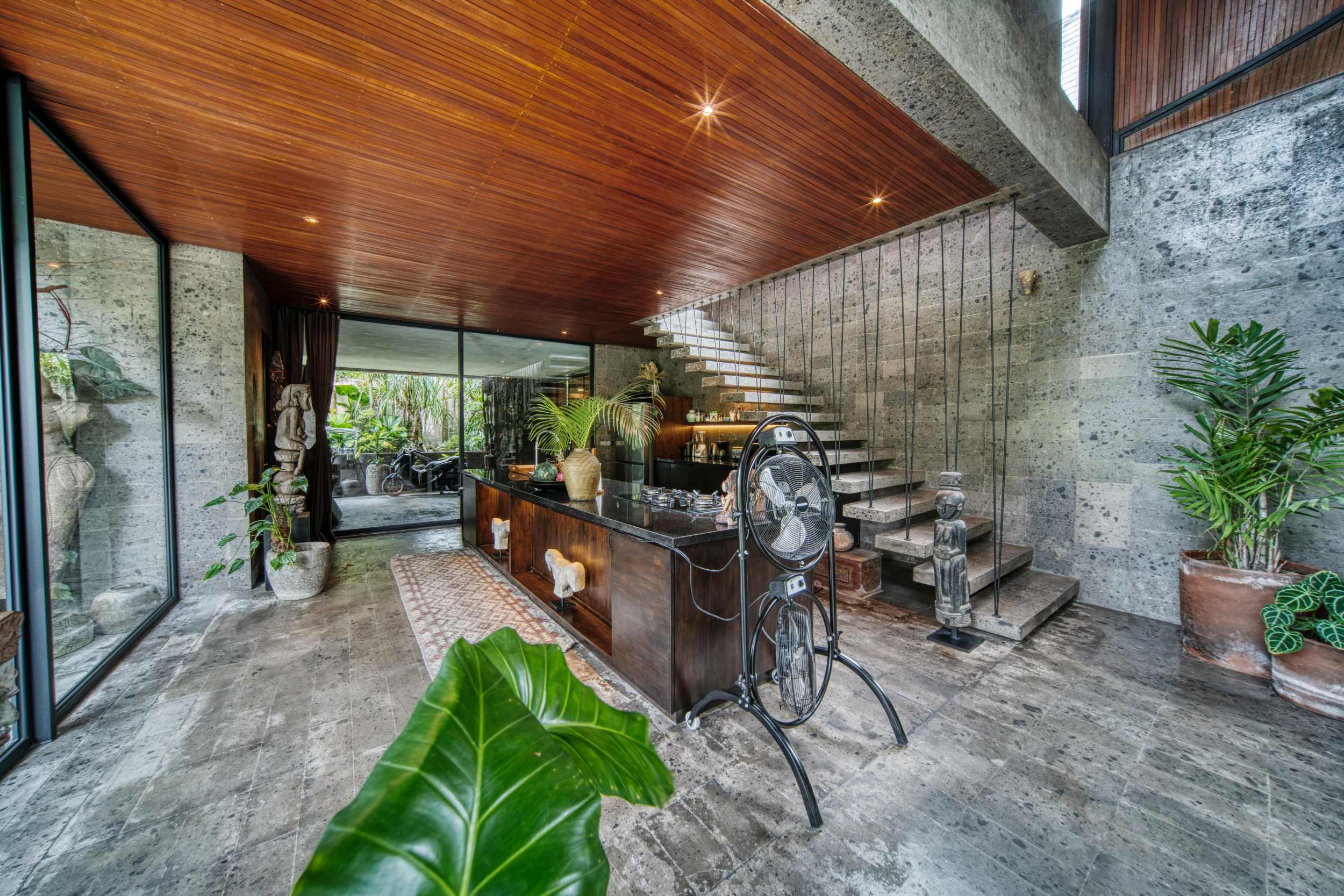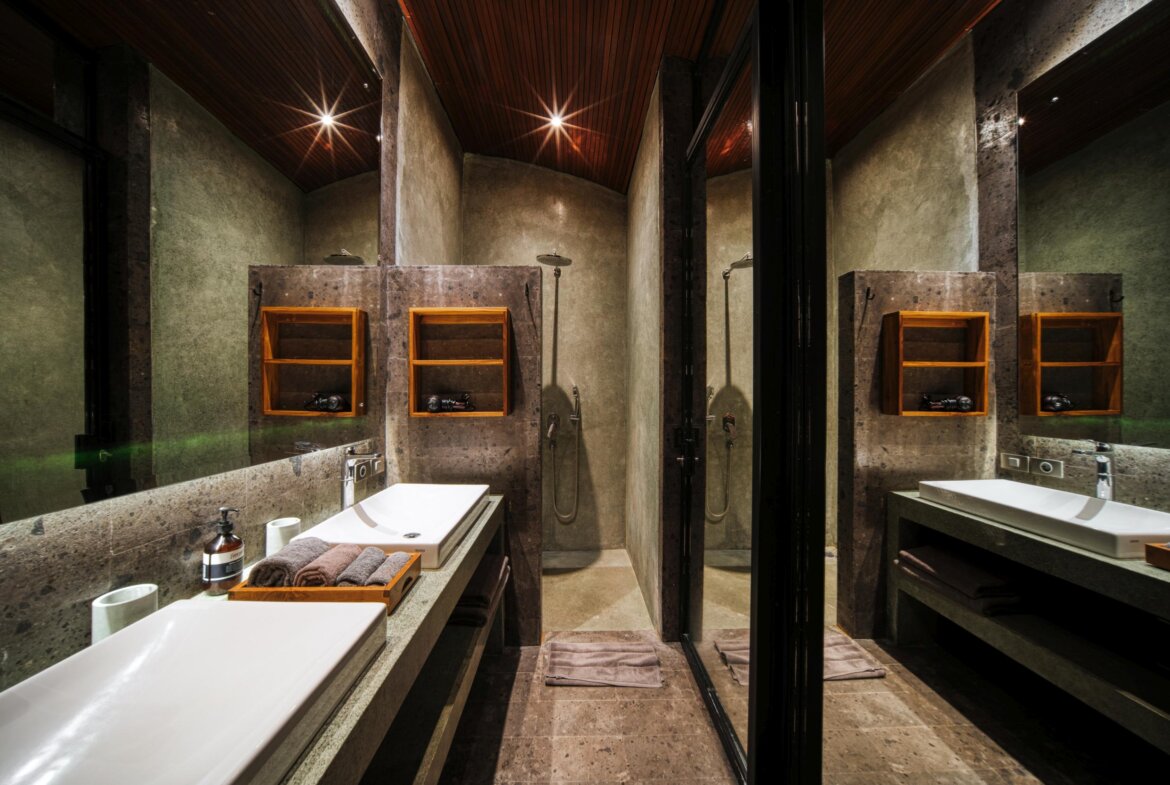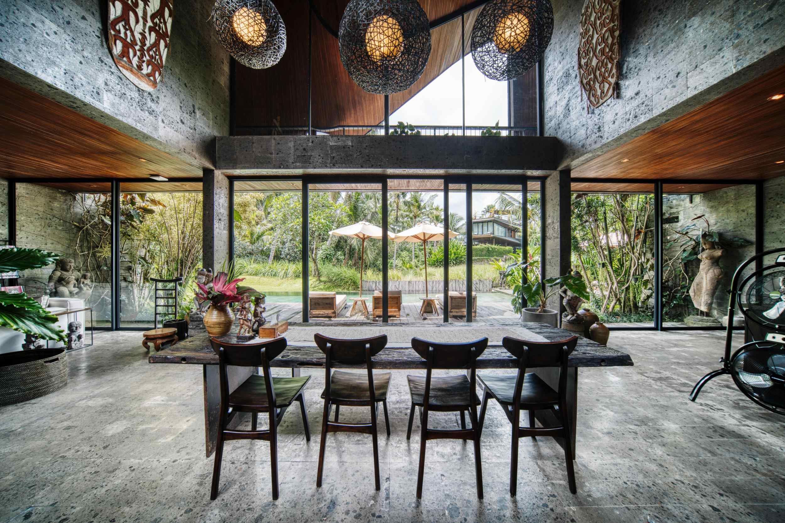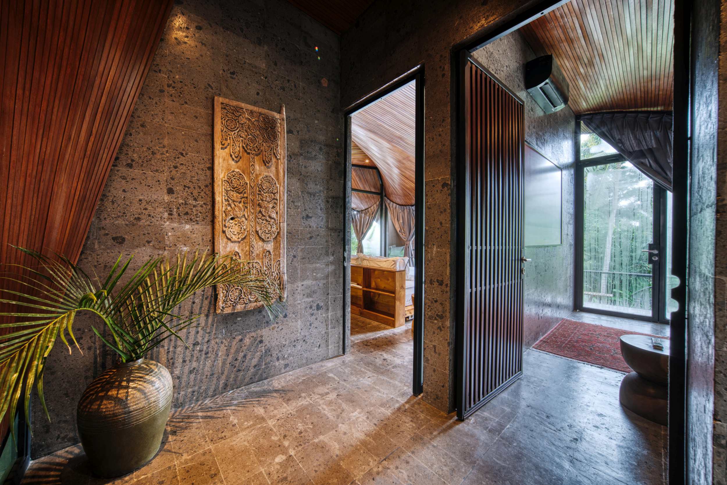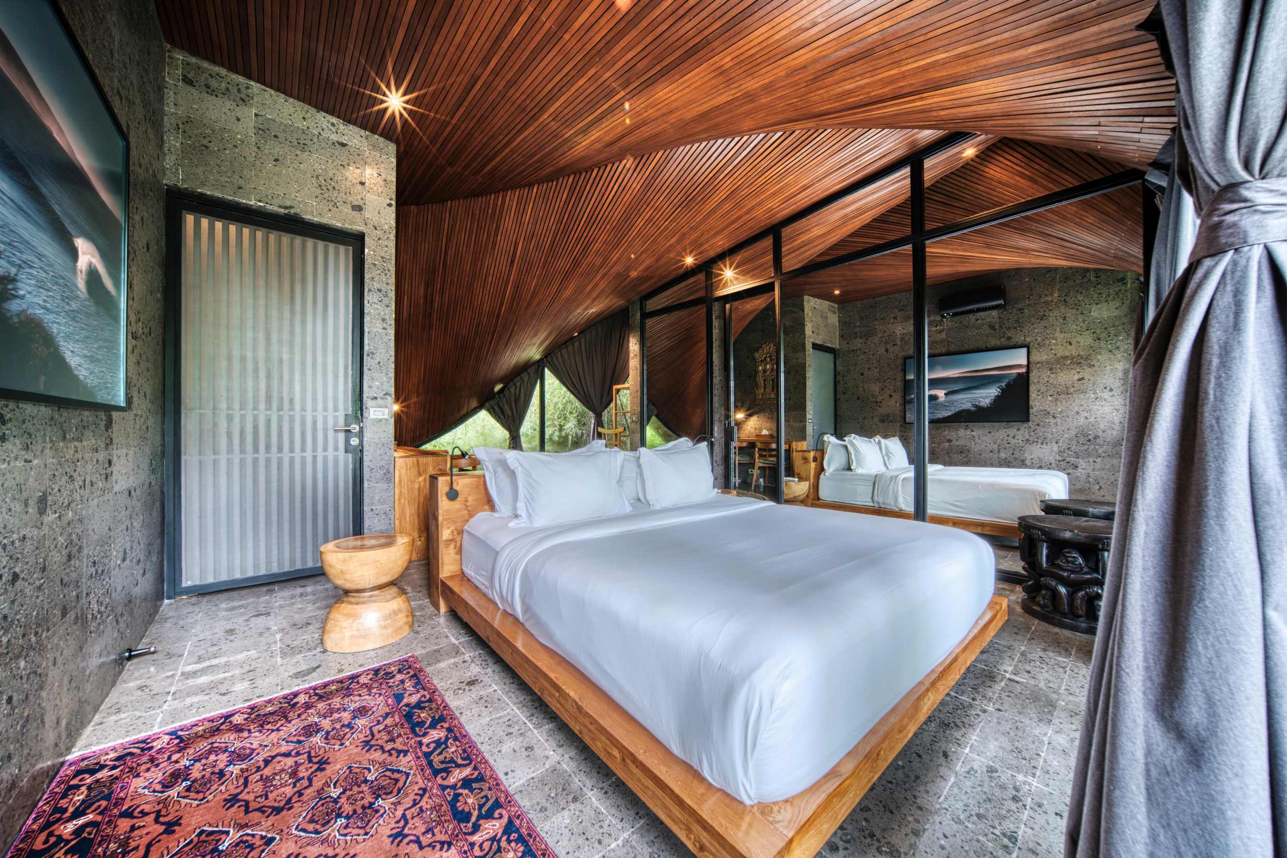 The choice of materials speaks to a reverence for sustainability and Balinese heritage, with ’Kerobokan stone’—a revered local hard sandstone—and warm woods adorning the interior roof, marrying tradition with modernity.
