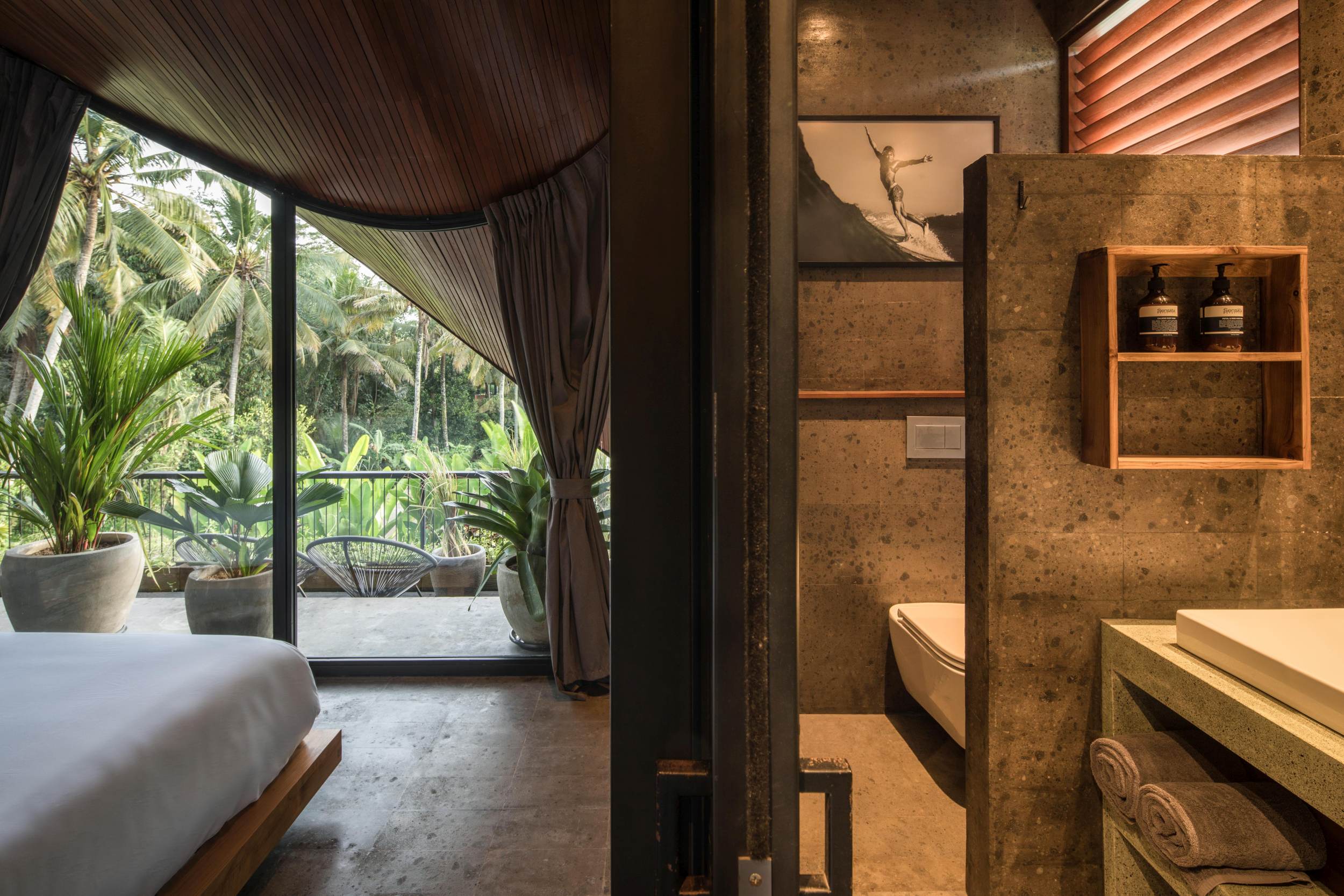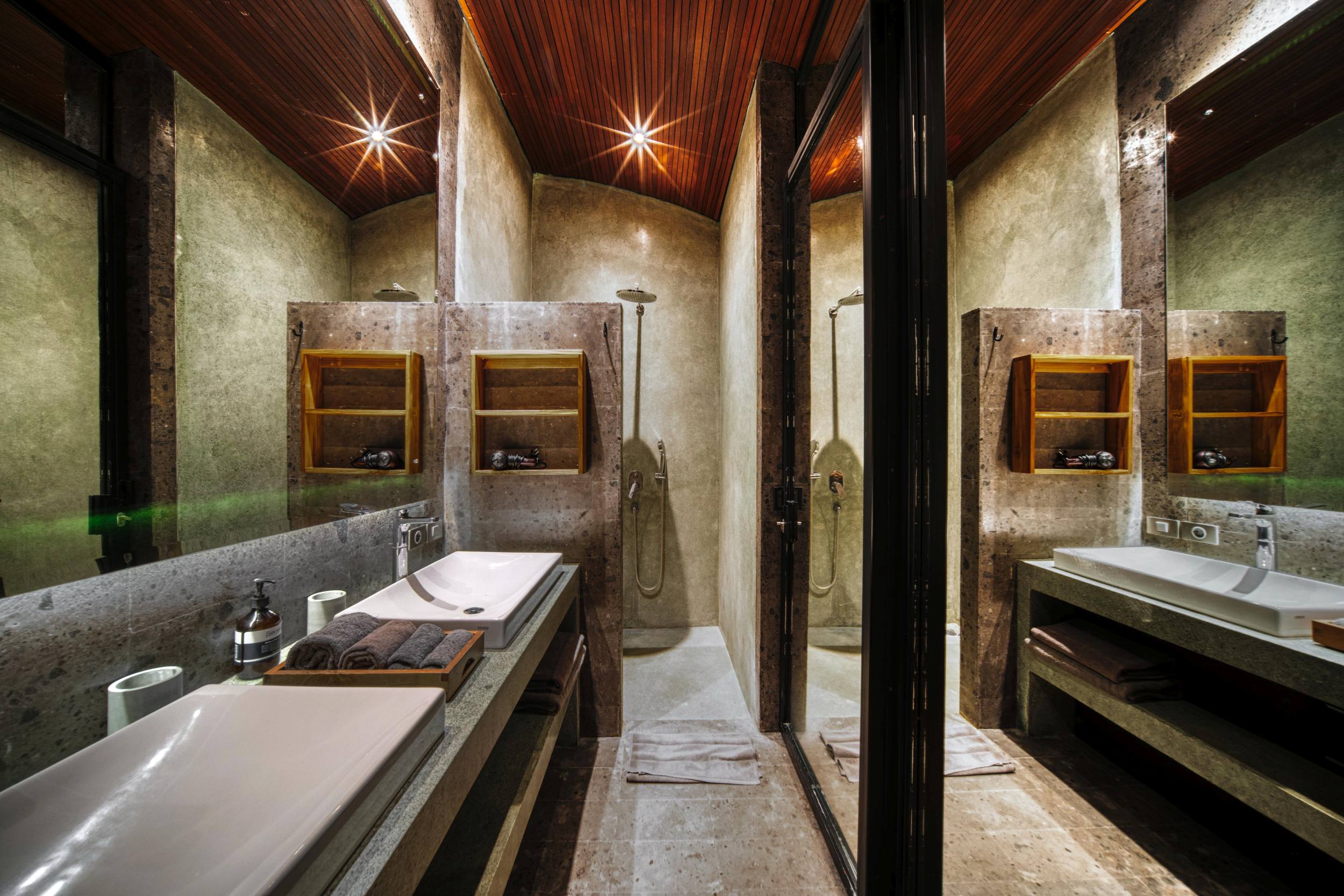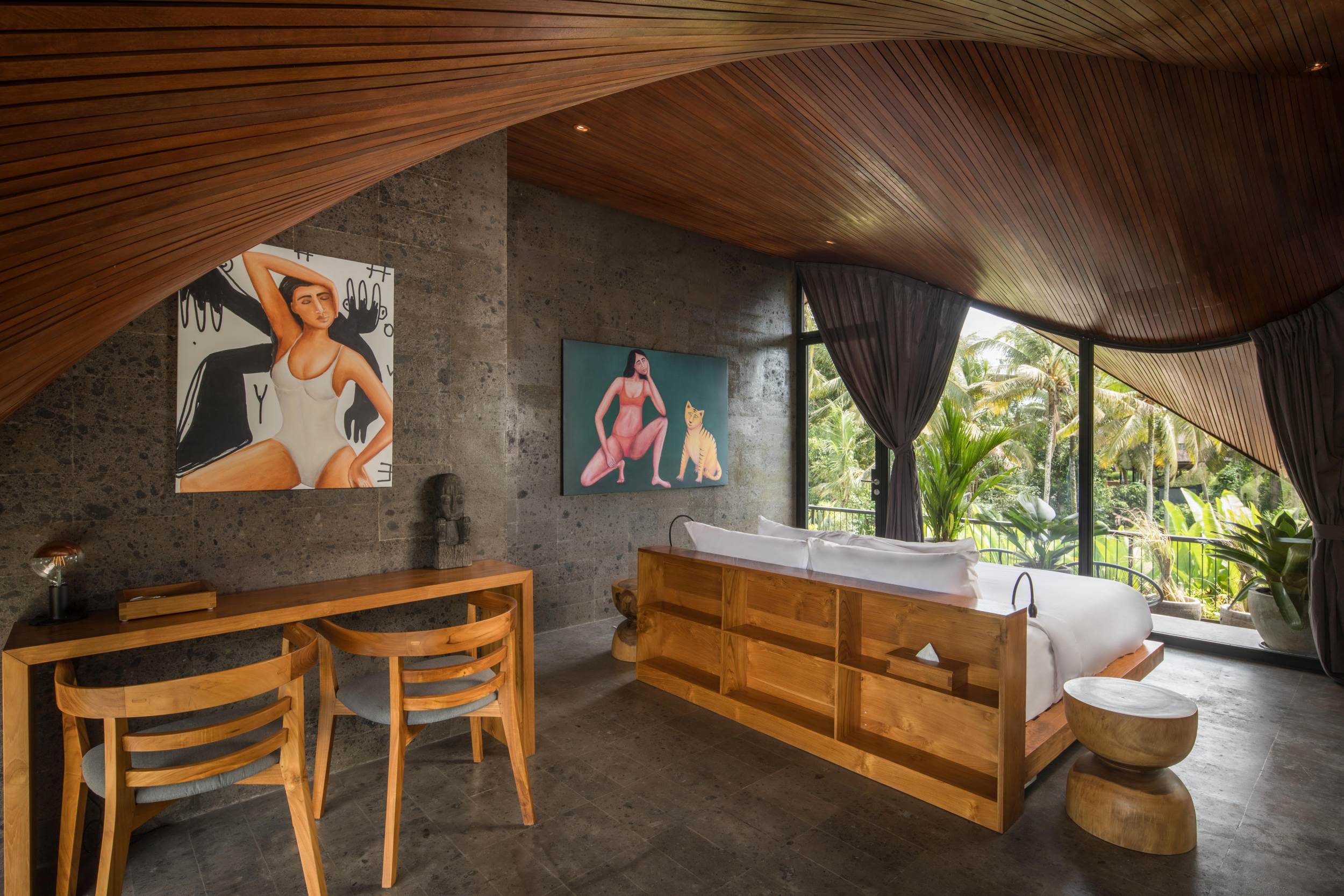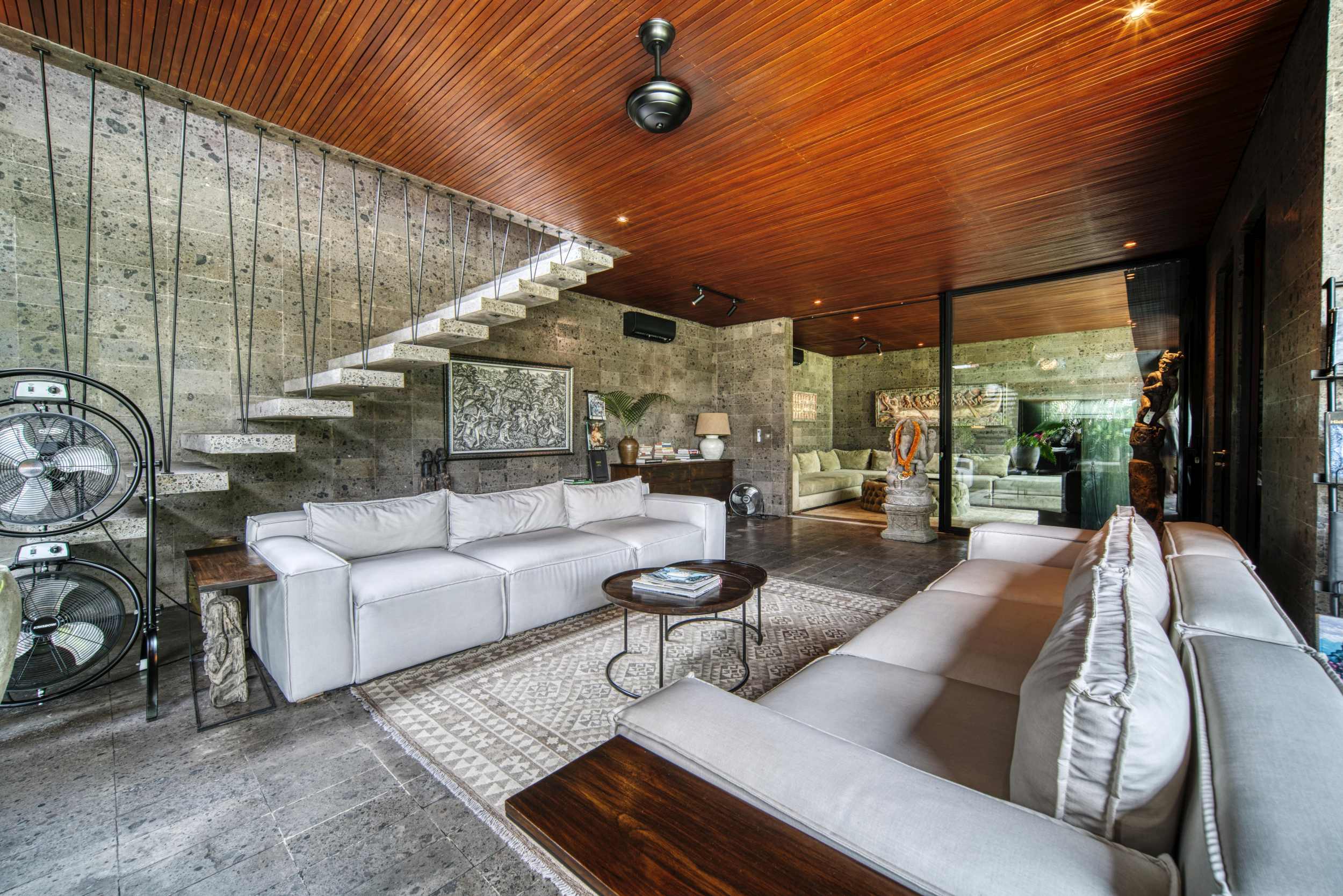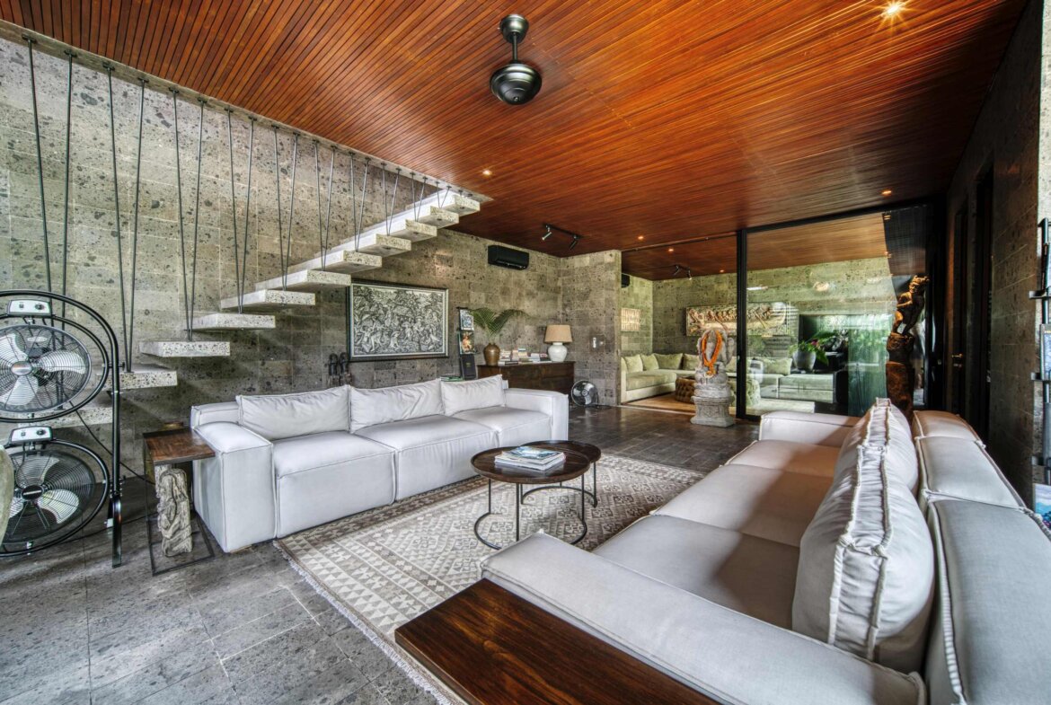 The choice of materials speaks to a reverence for sustainability and Balinese heritage, with ’Kerobokan stone’—a revered local hard sandstone—and warm woods adorning the interior roof, marrying tradition with modernity.