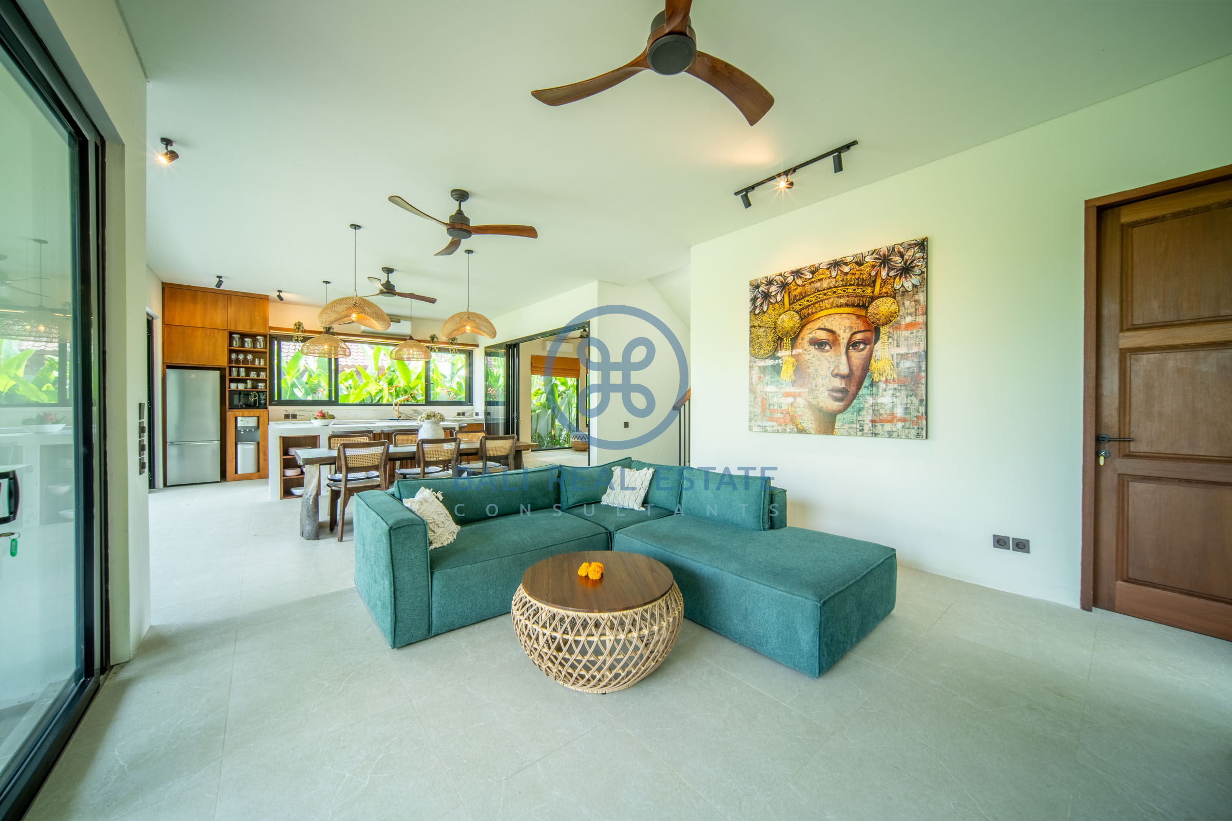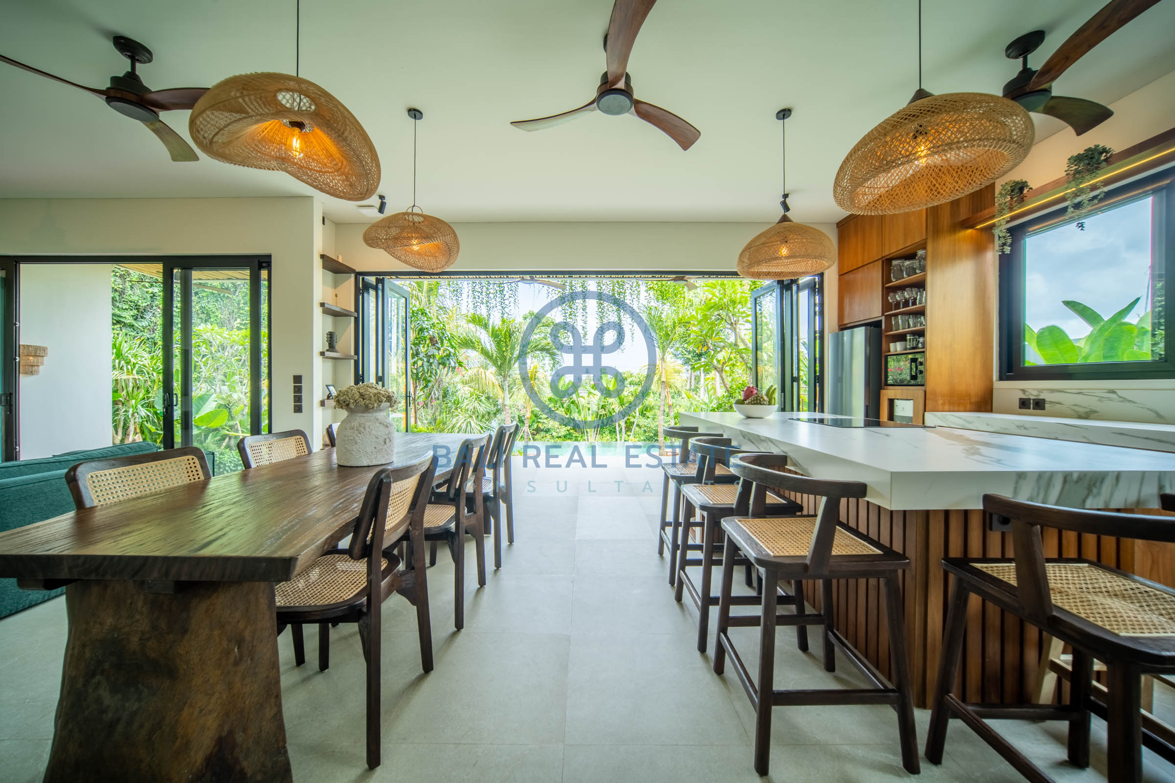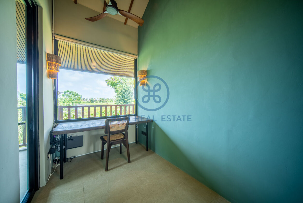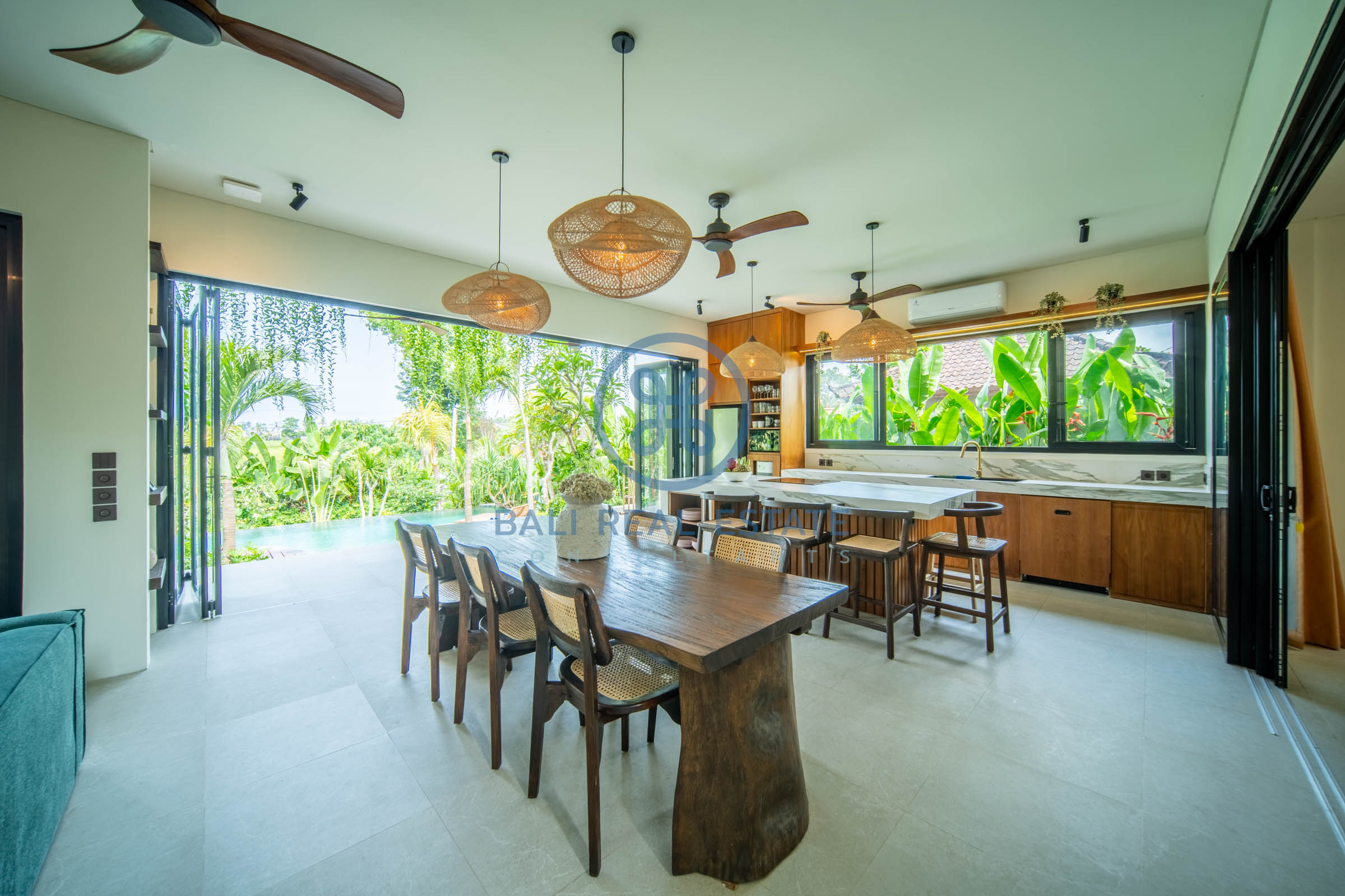 Set on 670 m² of land, this two-storey, 250 m² villa is thoughtfully crafted for families, offering 3 spacious bedrooms and a dedicated office—ideal for remote work or creative projects. A versatile playroom adds even more flexibility and can easily be converted into an additional guestroom when needed. The open-plan living and dining areas flow seamlessly to the outdoors, revealing tranquil jungle and rice field views that enhance the home’s sense of space and connection to nature.