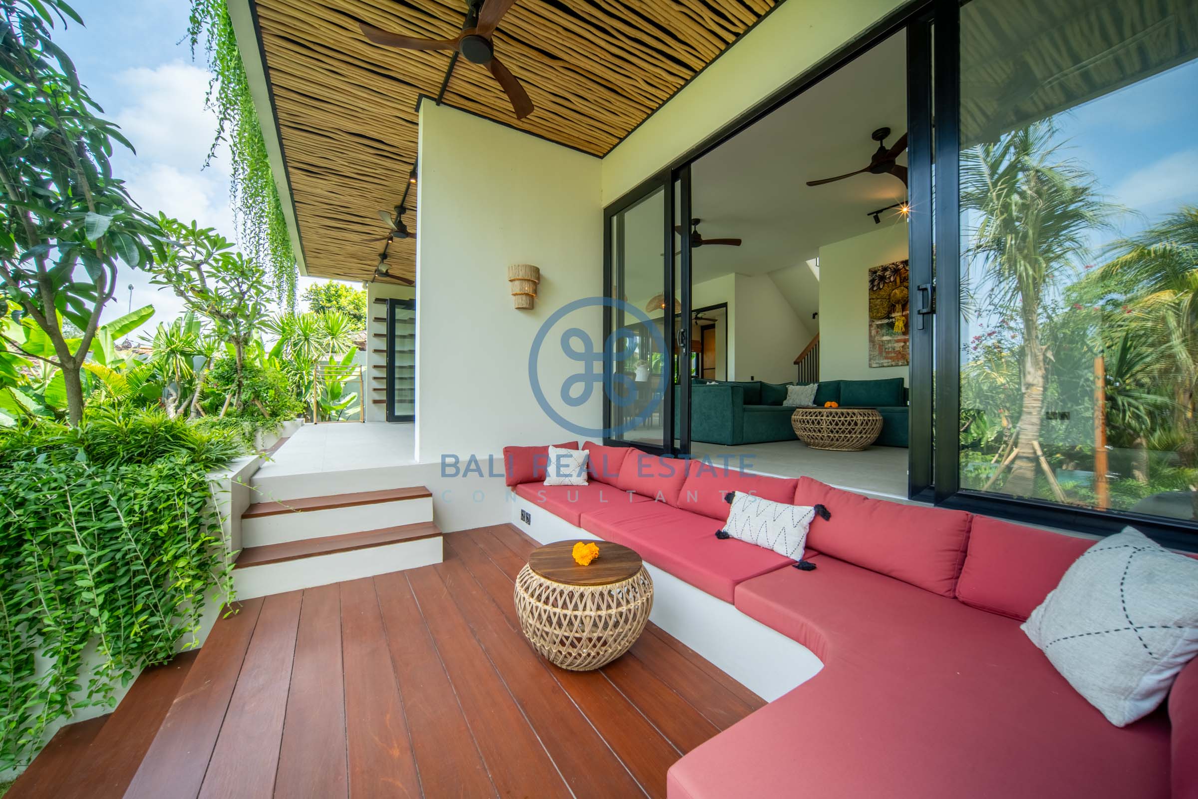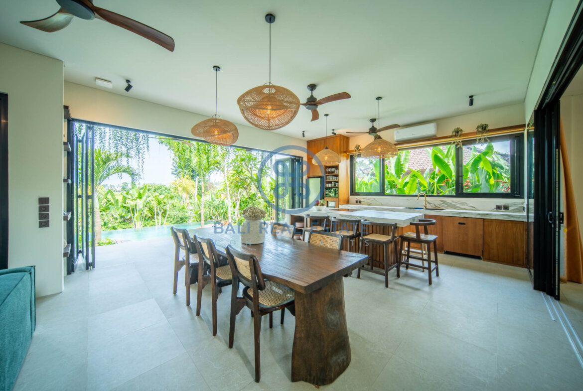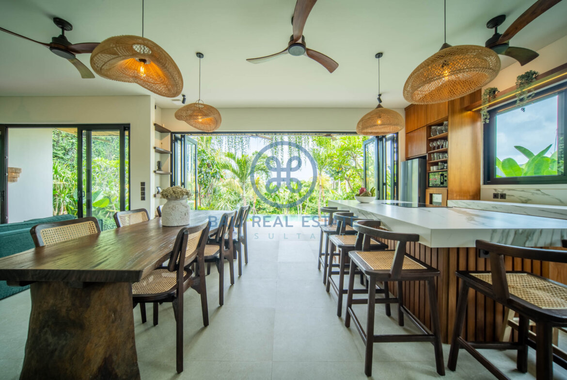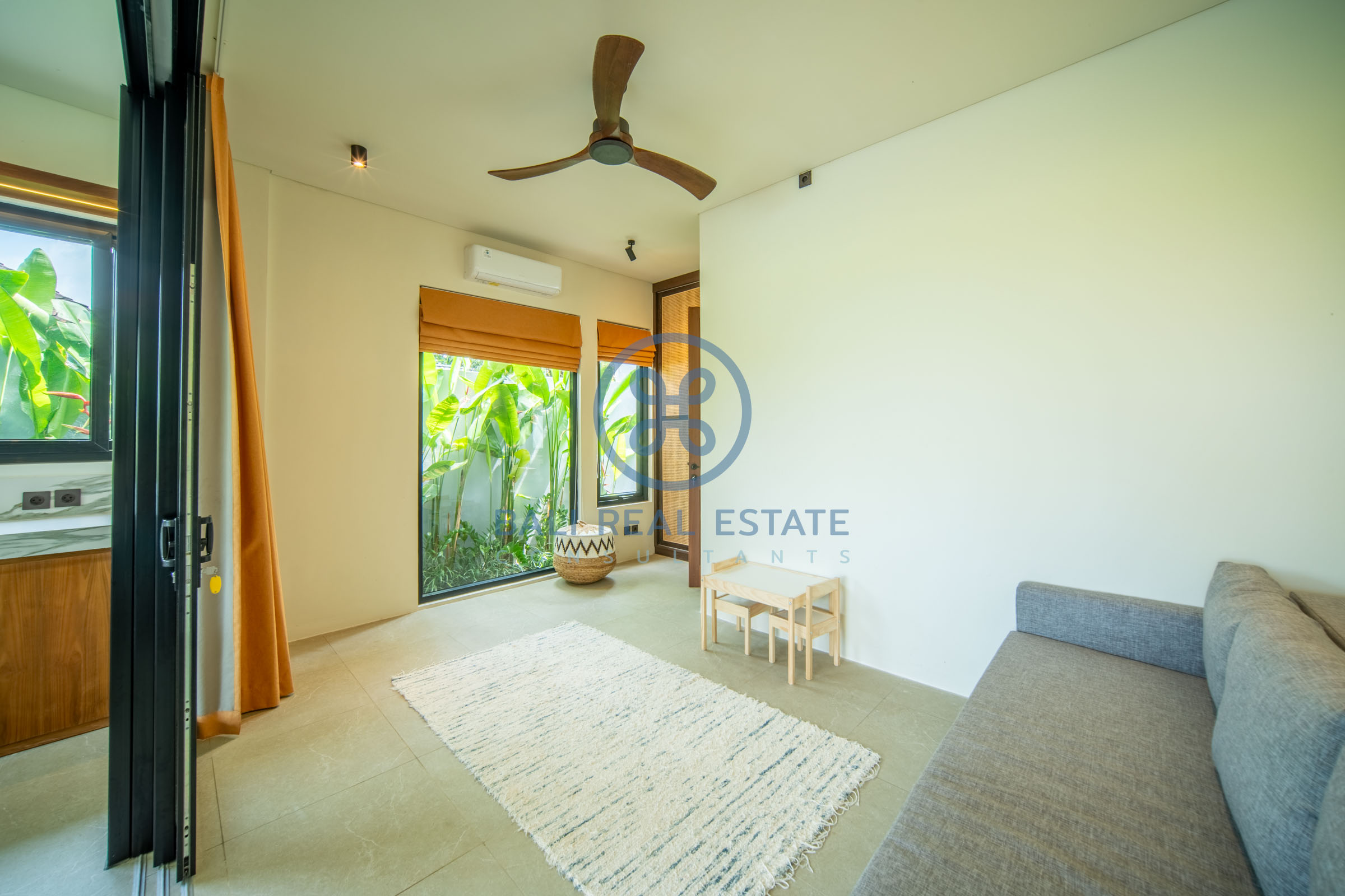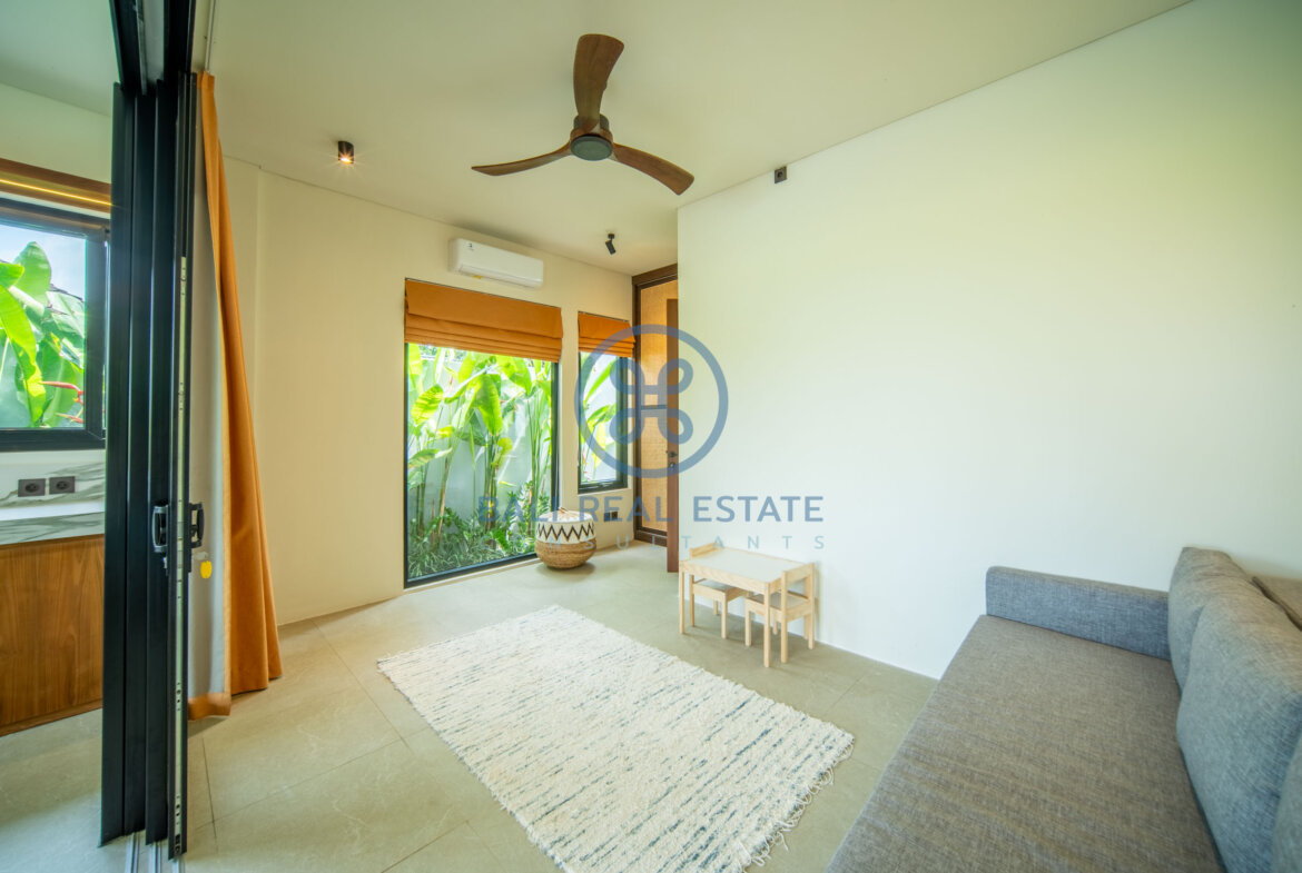 Set on 670 m² of land, this two-storey, 250 m² villa is thoughtfully crafted for families, offering 3 spacious bedrooms and a dedicated office—ideal for remote work or creative projects. A versatile playroom adds even more flexibility and can easily be converted into an additional guestroom when needed. The open-plan living and dining areas flow seamlessly to the outdoors, revealing tranquil jungle and rice field views that enhance the home’s sense of space and connection to nature.
