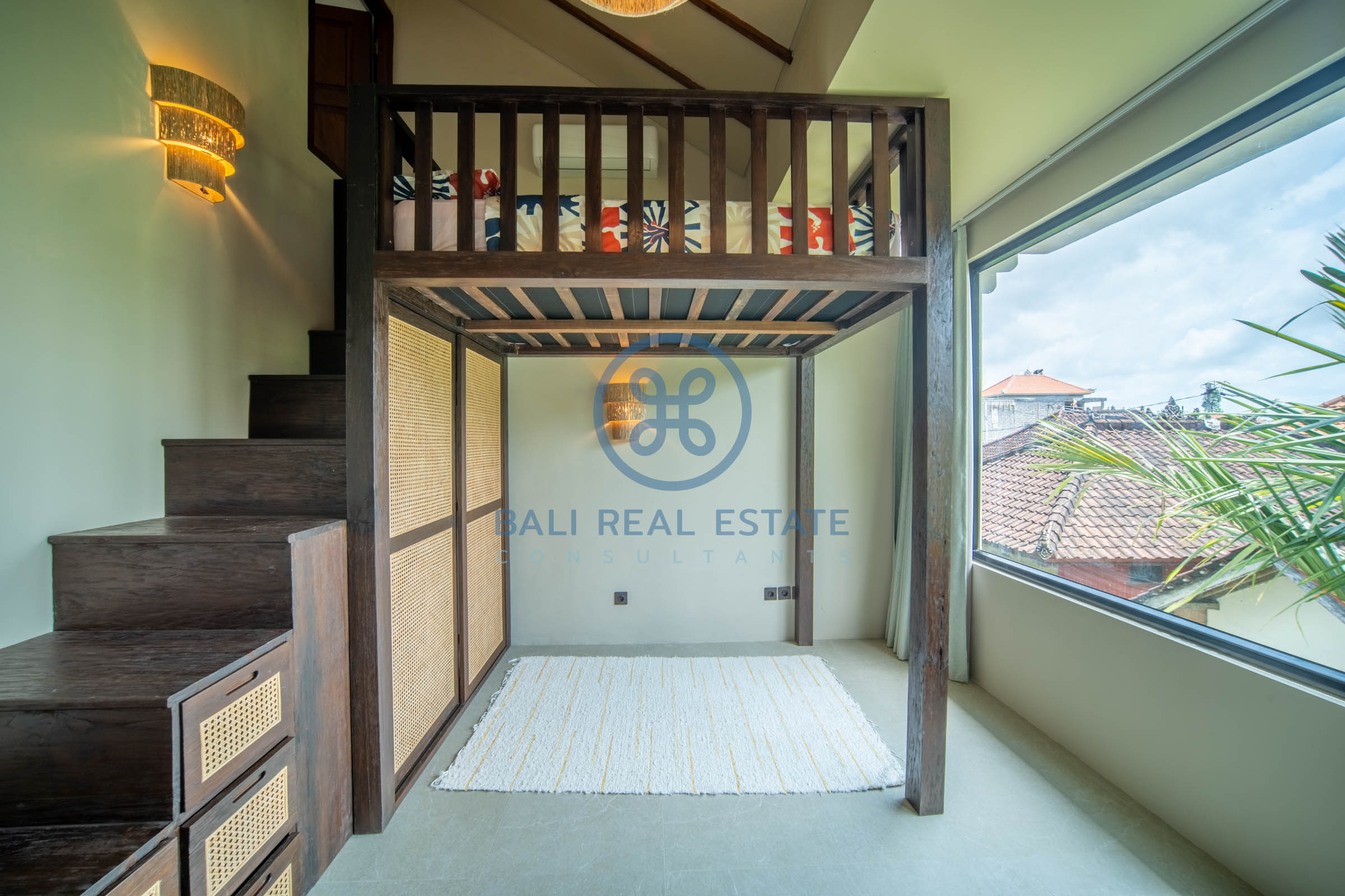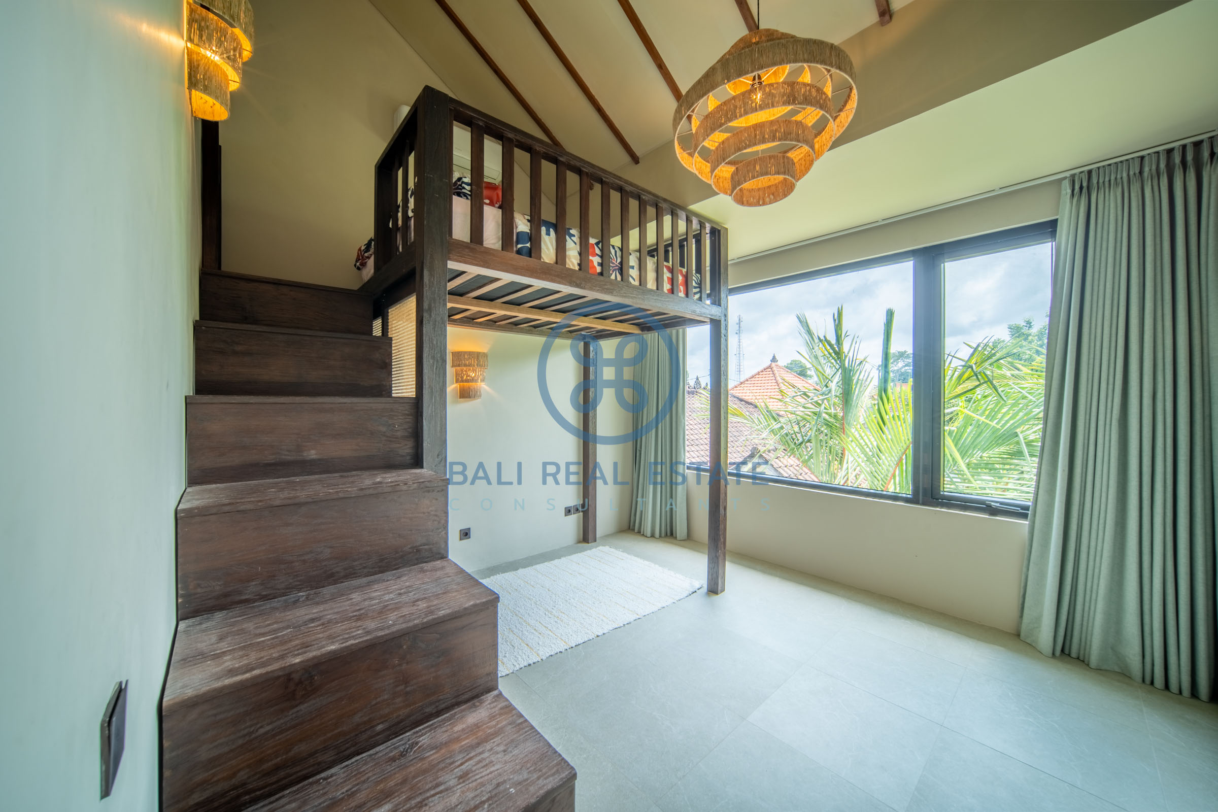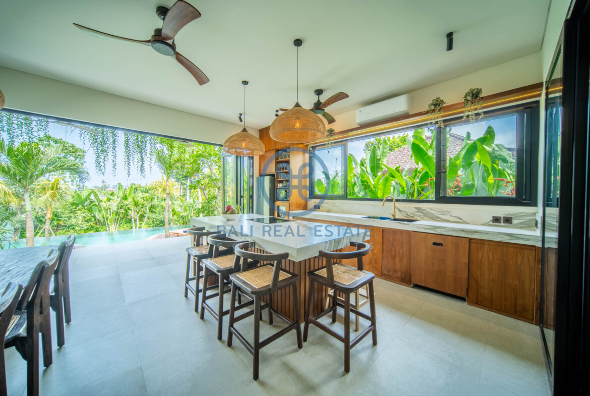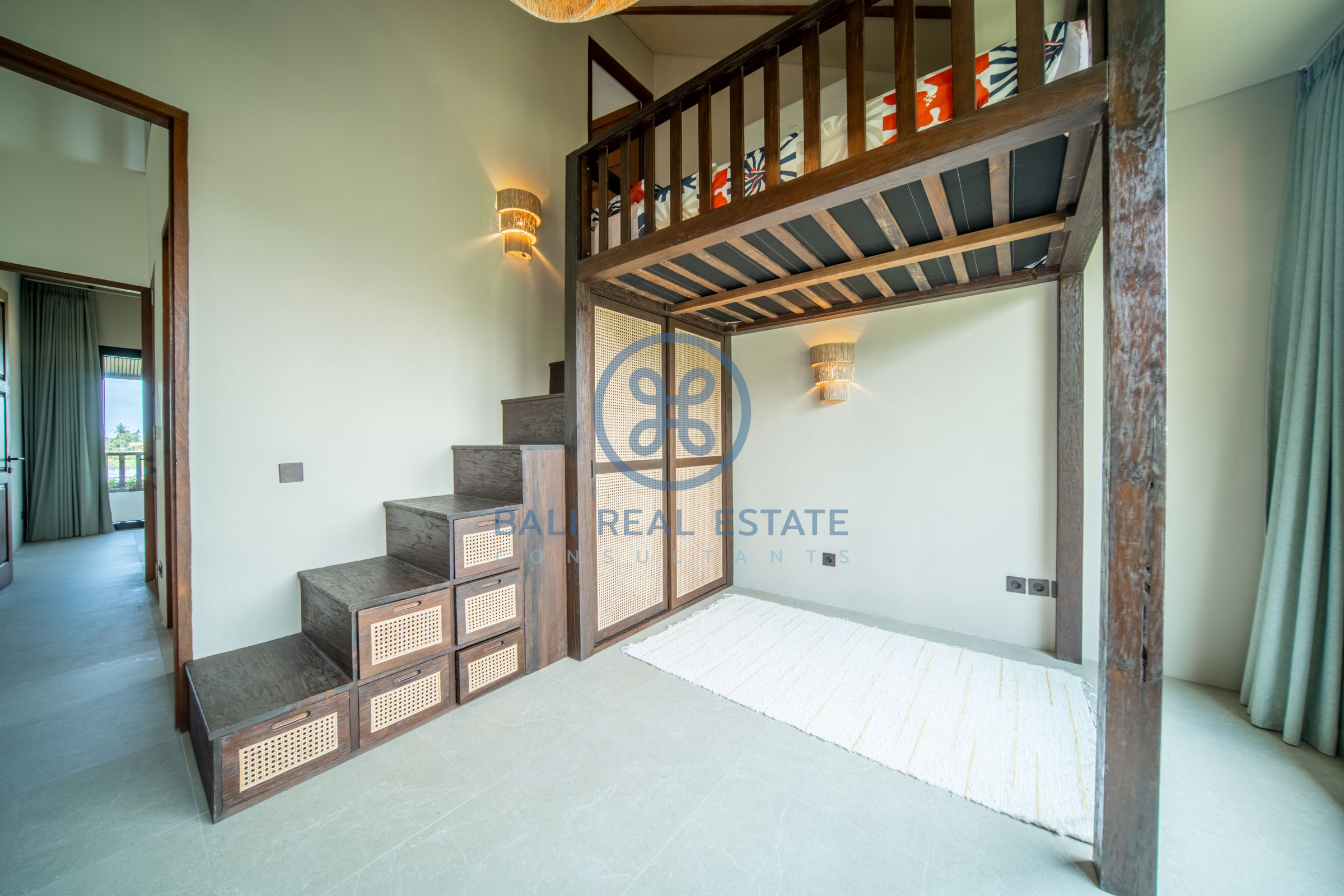 Set on 670 m² of land, this two-storey, 250 m² villa is thoughtfully crafted for families, offering 3 spacious bedrooms and a dedicated office—ideal for remote work or creative projects. A versatile playroom adds even more flexibility and can easily be converted into an additional guestroom when needed. The open-plan living and dining areas flow seamlessly to the outdoors, revealing tranquil jungle and rice field views that enhance the home’s sense of space and connection to nature.
