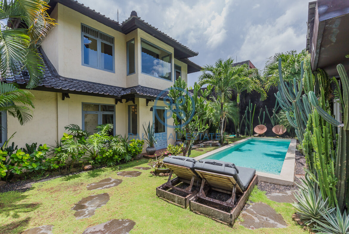 Despite its central location surrounded by cafés, restaurants, supermarkets, international schools, and world-class surf spots, the home is tucked away on a quiet street, offering privacy and peace. With three en-suite bedrooms, three bathrooms, 11,200 watts of electricity, and a total land area of 300 m² (100 m² main house 40 m² studio), this well-appointed residence presents a rare opportunity for families seeking a tranquil, family-friendly home in a prime Canggu location for USD 4,500 per month.