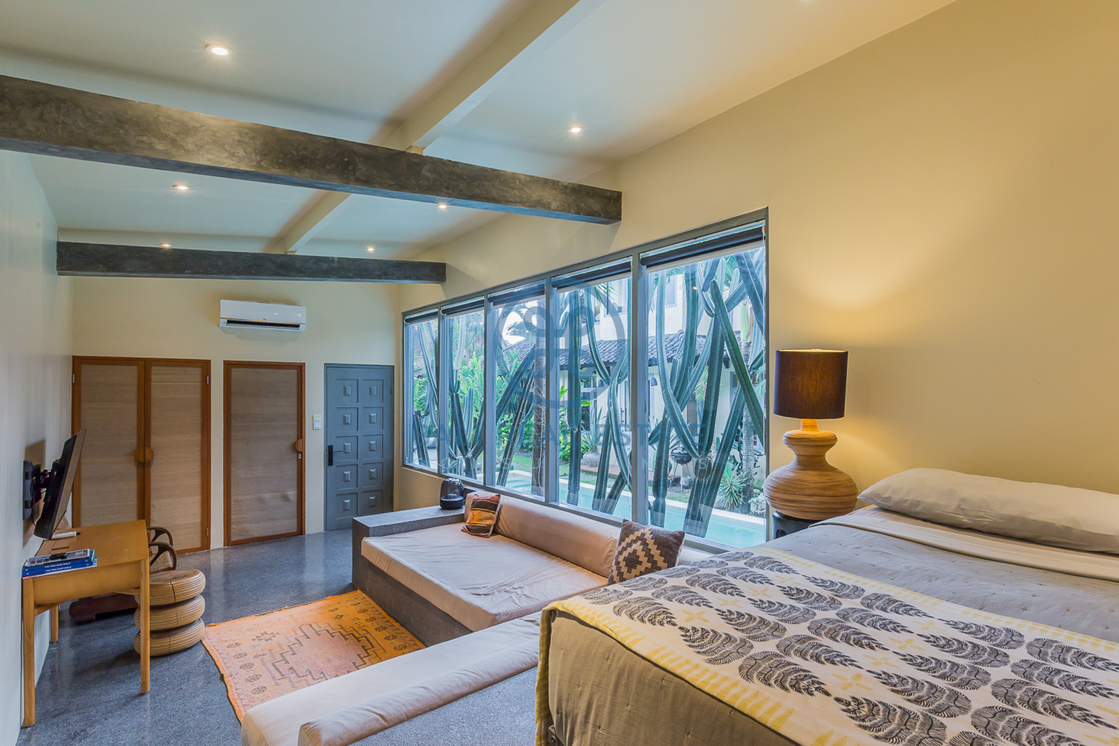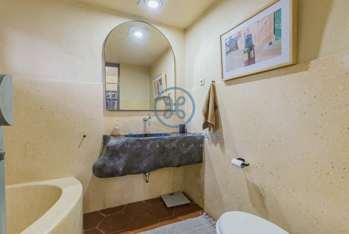 The main house features two spacious bedrooms with en-suite bathrooms, a cozy step-down living area, and a fully equipped kitchen with dining for six. The adjoining studio provides added flexibility with its own sitting area, loft-style bedroom, and private bathroom—perfect for teenagers, visiting family, or live-in help. All rooms are fully air-conditioned, ensuring year-round comfort, while the lush tropical garden and private 9 x 3-meter pool create a serene outdoor retreat. A laundry room and washing machine add everyday convenience, making the home perfectly suited for long-term living. Included in the rent are cleaning services four times per week, a dedicated gardener, a pool attendant, and high-speed internet—allowing residents to fully enjoy Bali’s relaxed lifestyle without the hassle of maintenance.