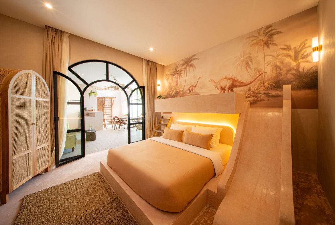 Nestled in Padang Linjong, Canggu, this unique villa introduces Bali’s first dinosaur-themed design paired with thoughtfully curated interiors, offering a bold new expression of island living. The property brings a vibrant personality to the Bali villa market while being situated in the heart of everything that makes Canggu one of the island’s most desirable destinations.