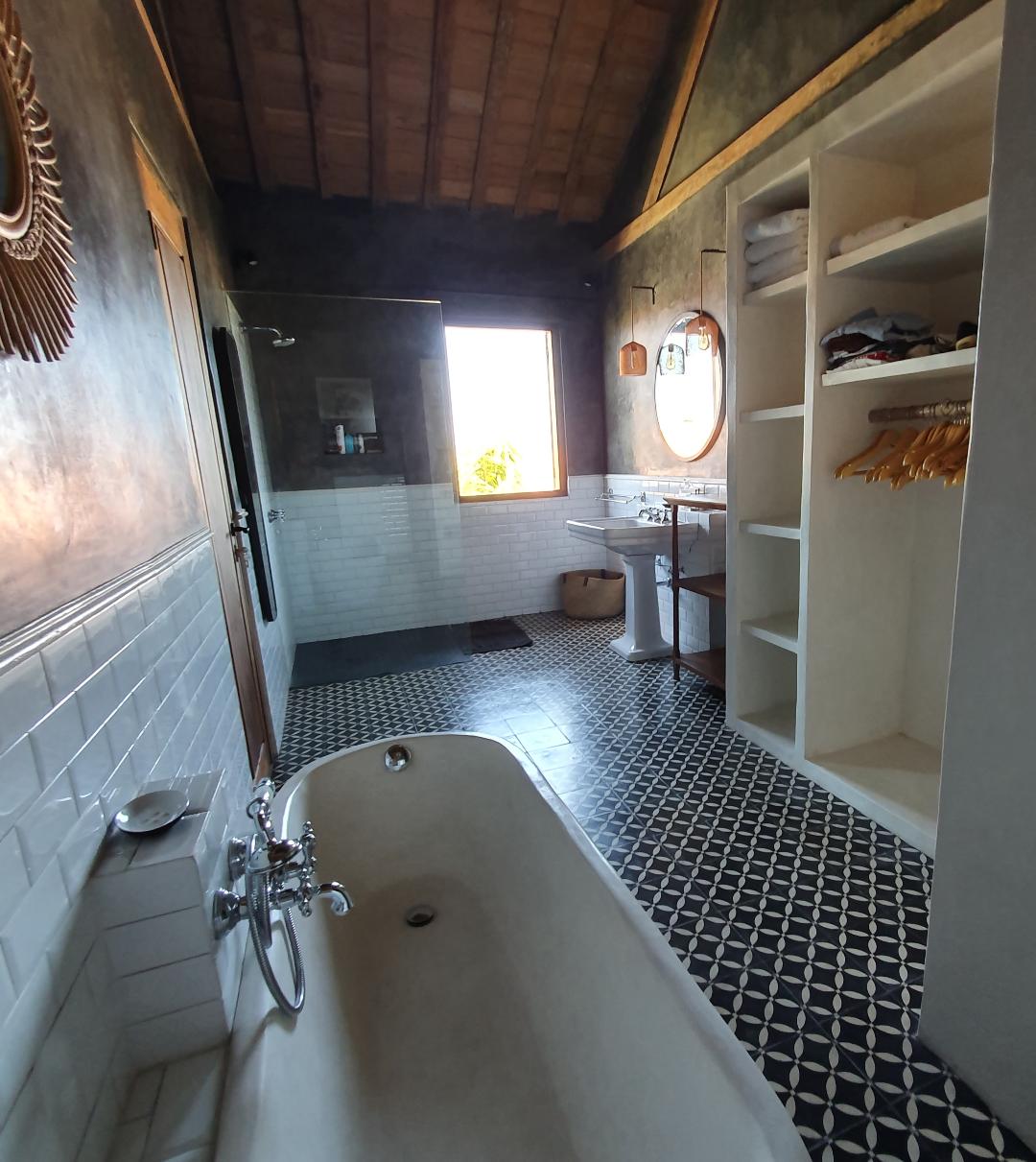 Discover a stylish and comfortable villa set on a land size of 450 m², perfectly blending indoor comfort with outdoor tropical living. This elegant property features three spacious bedrooms, each with its own ensuite bathroom and air conditioning, while the two upstairs bathrooms include bathtubs for added relaxation and luxury. Every detail has been designed to ensure comfort, privacy, and modern living.