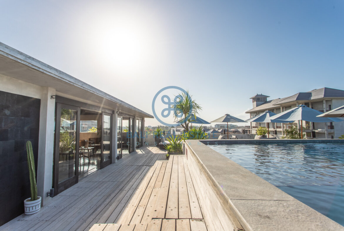 Sits on near the main road of canggu, with a total land area of 500 m2 (5,0 Are) with 1800 m2 building size, and consists of a total of 30 rooms, Boasting a rooftop with a pool and a bar offers chic accommodation with shared lounge well fitted as working space, restaurant, bar, coffee shop, large parking area, garden, 8m x 4m swimming pool, lobby, staff area, roof top area with pool.
