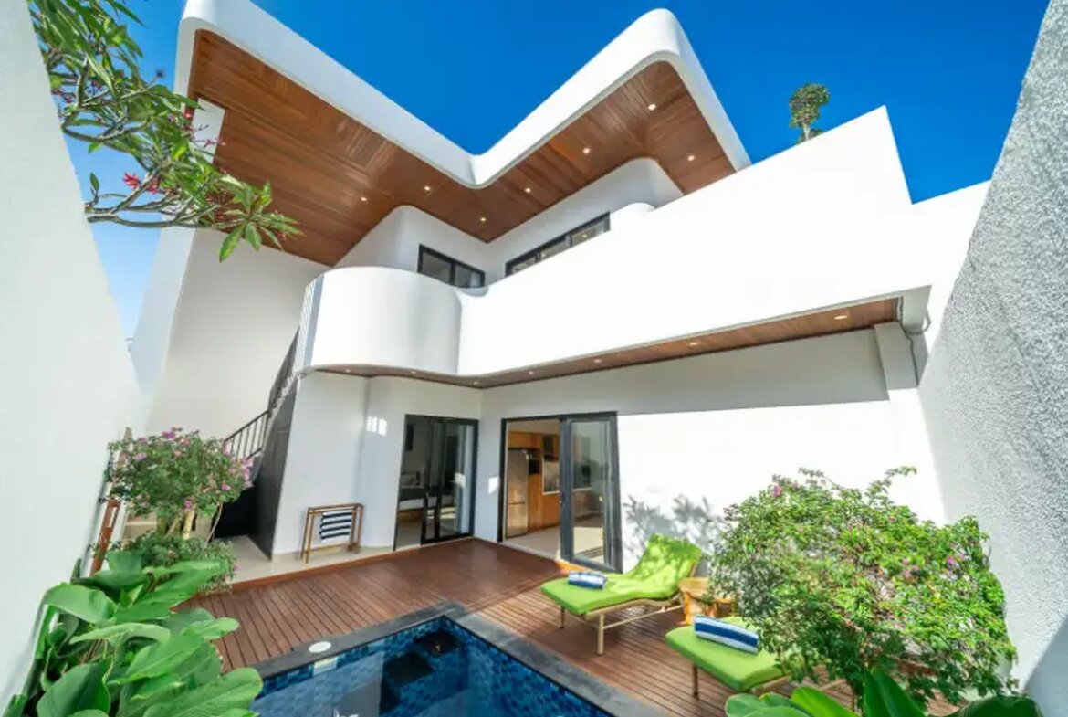 Discover contemporary living in this beautifully designed 5-bedroom villa located in a peaceful residential area of Sanur. Featuring a sleek, minimalist aesthetic with high-end finishes, this villa offers a perfect blend of comfort and style.