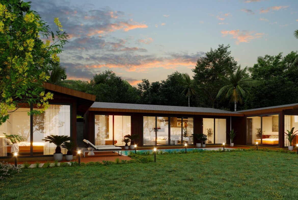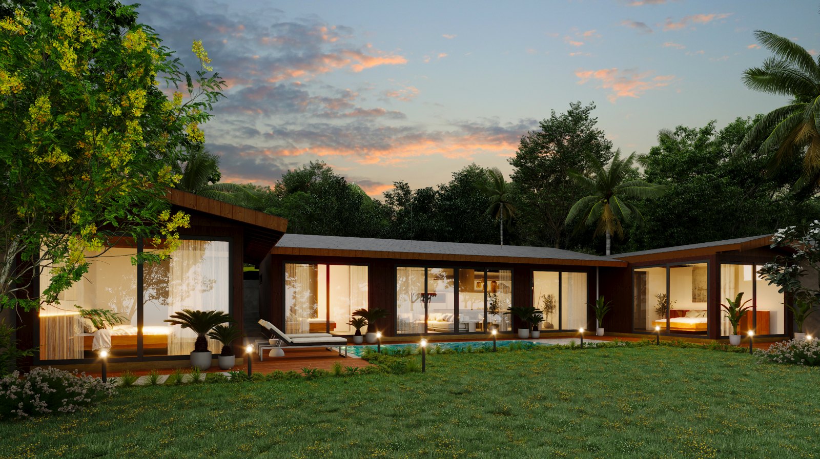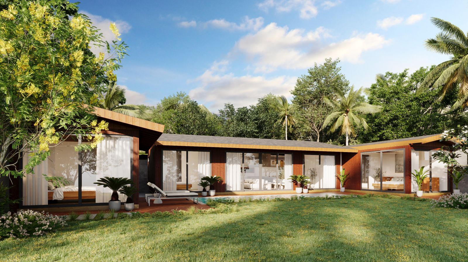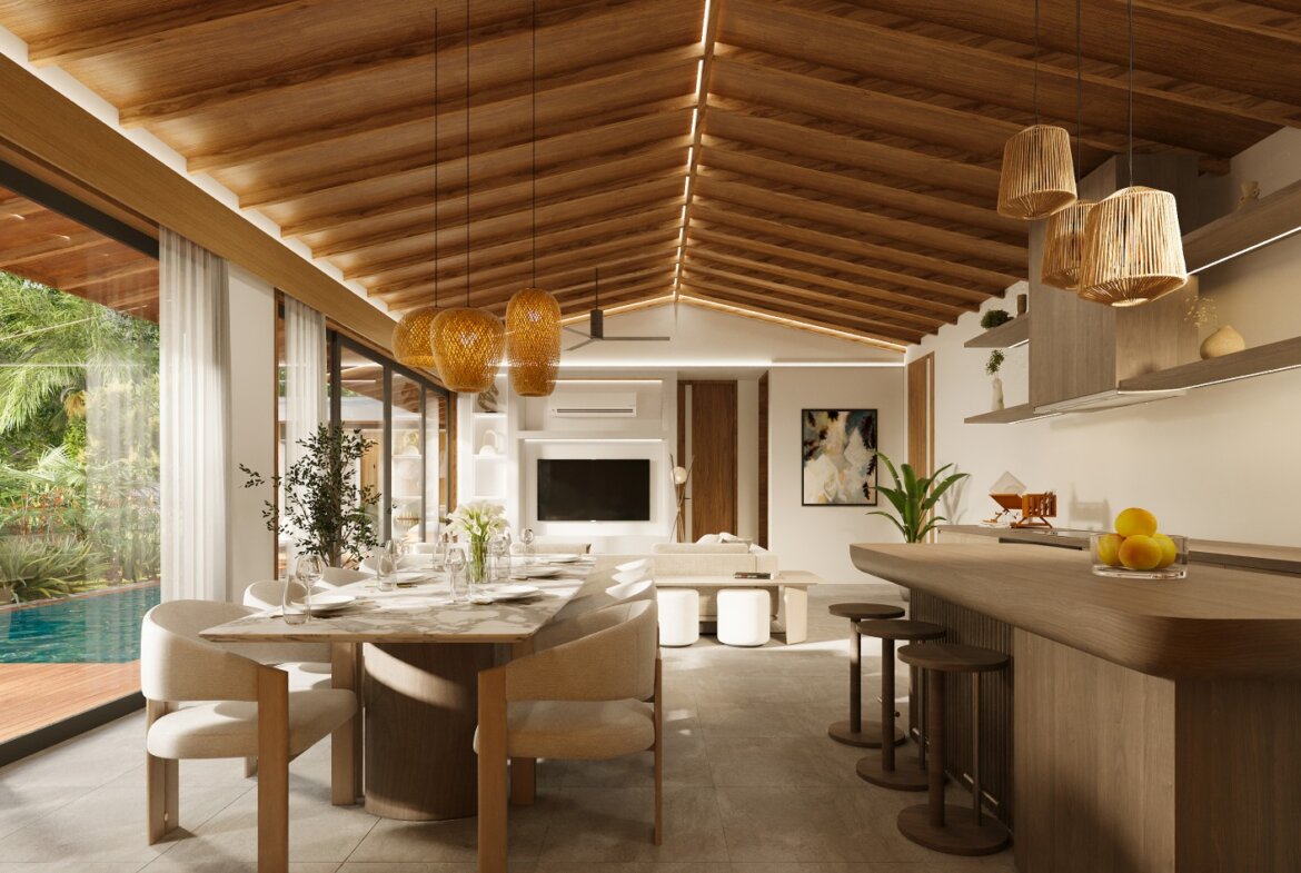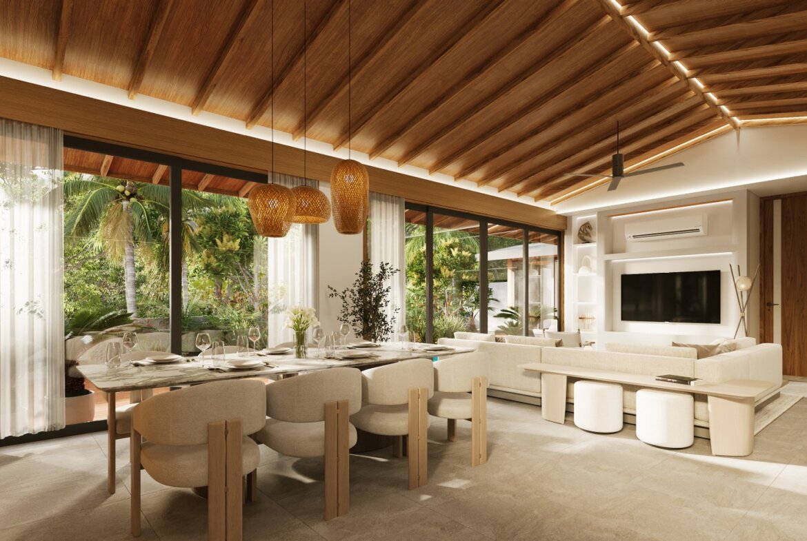 The villa features spacious open-plan living areas, a sleek modern kitchen, and floor-to-ceiling windows that invite abundant natural light and provide serene views of the lush surroundings. Each bedroom is thoughtfully designed with warm wooden accents, ample storage, and ensuite bathrooms for ultimate privacy and convenience.