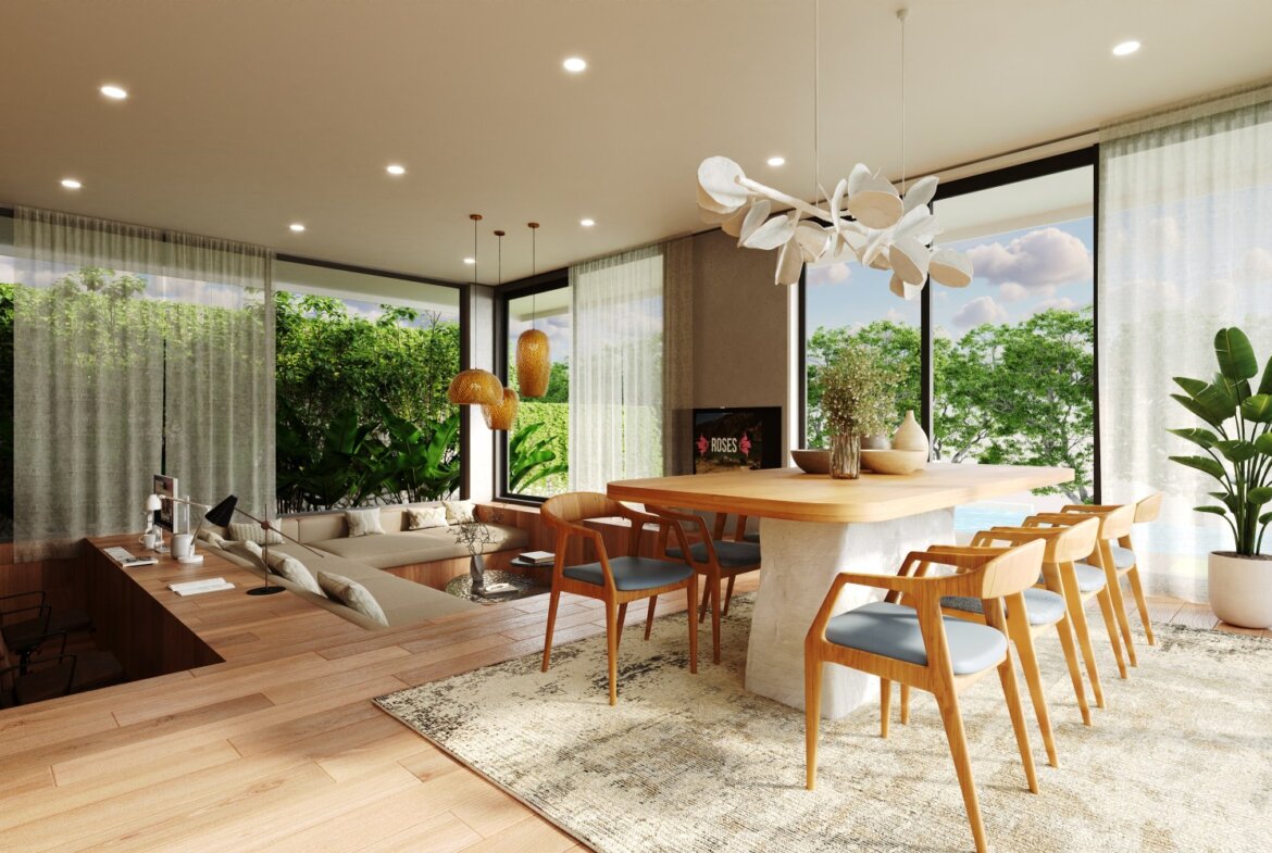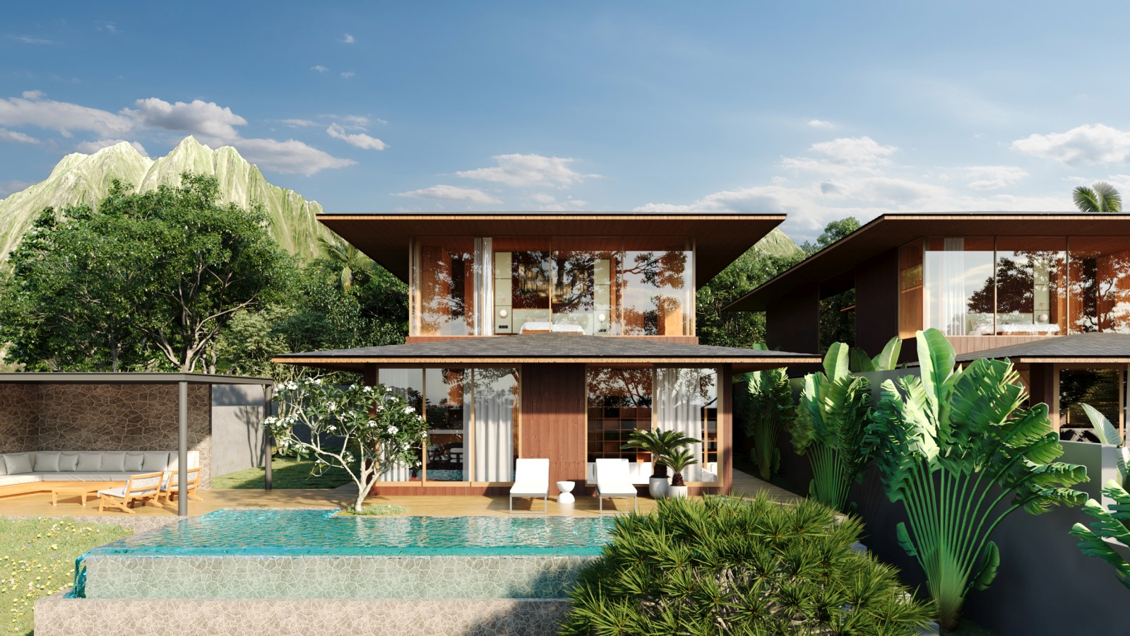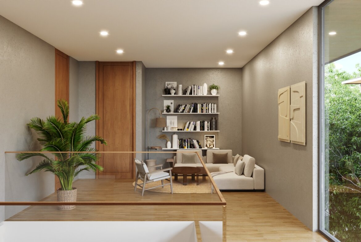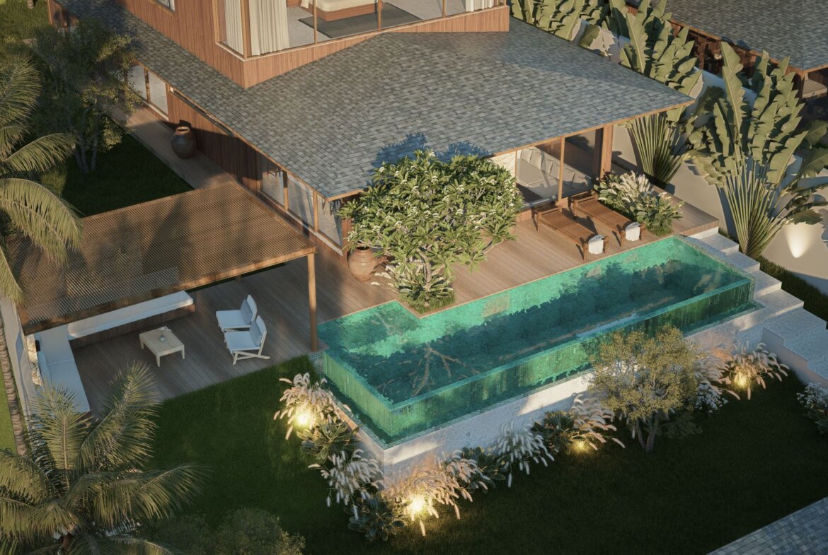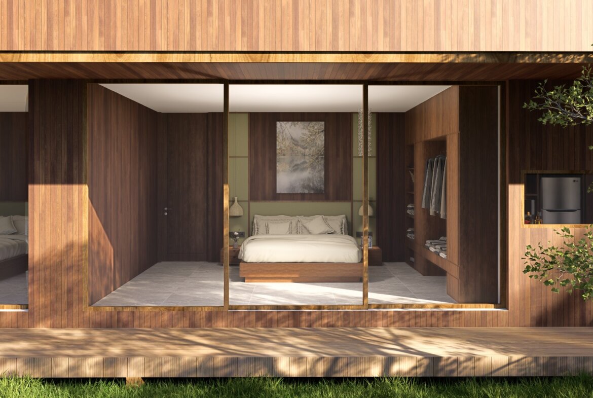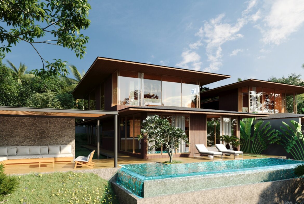 The villa features spacious open-plan living areas, a sleek modern kitchen, and floor-to-ceiling windows that invite abundant natural light and provide serene views of the lush surroundings. Each bedroom is thoughtfully designed with warm wooden accents, ample storage, and ensuite bathrooms for ultimate privacy and convenience.