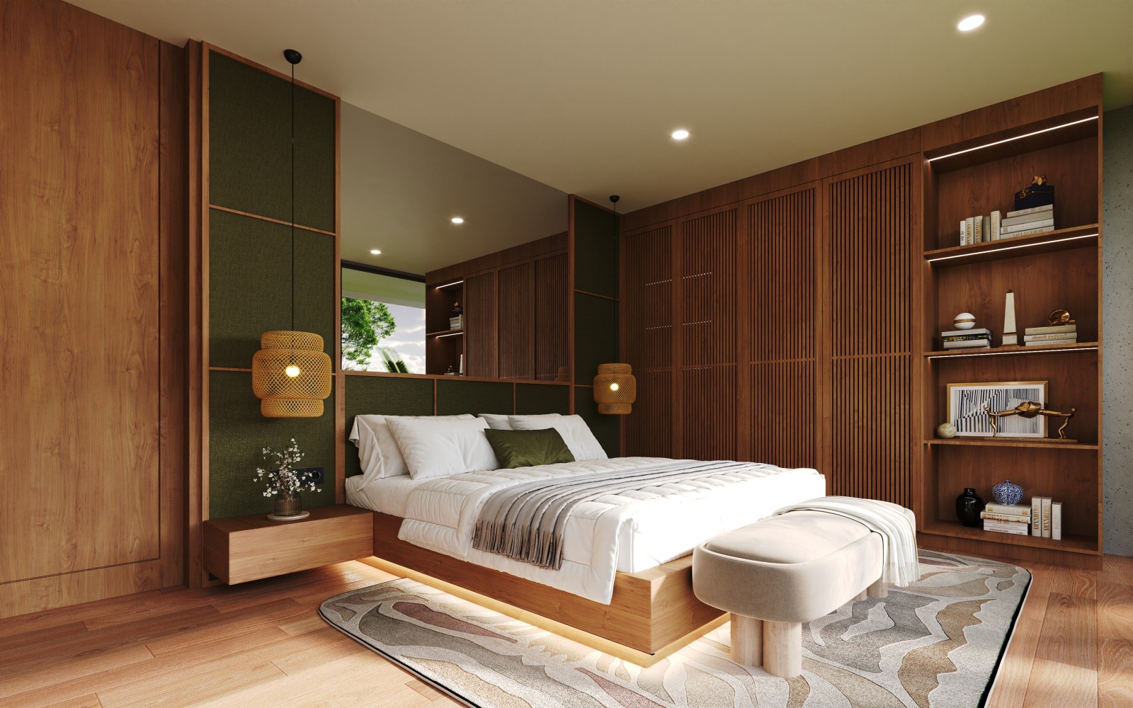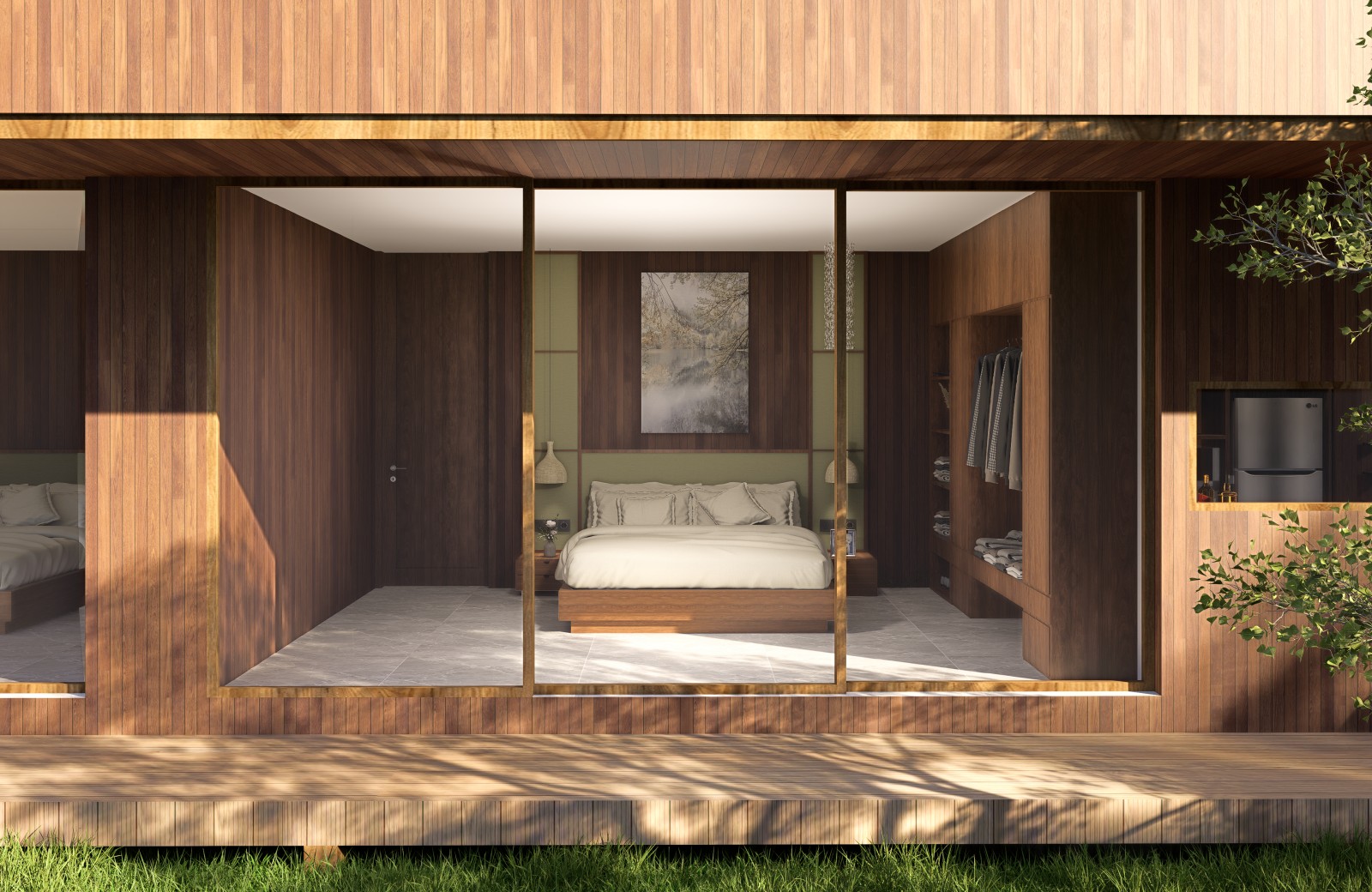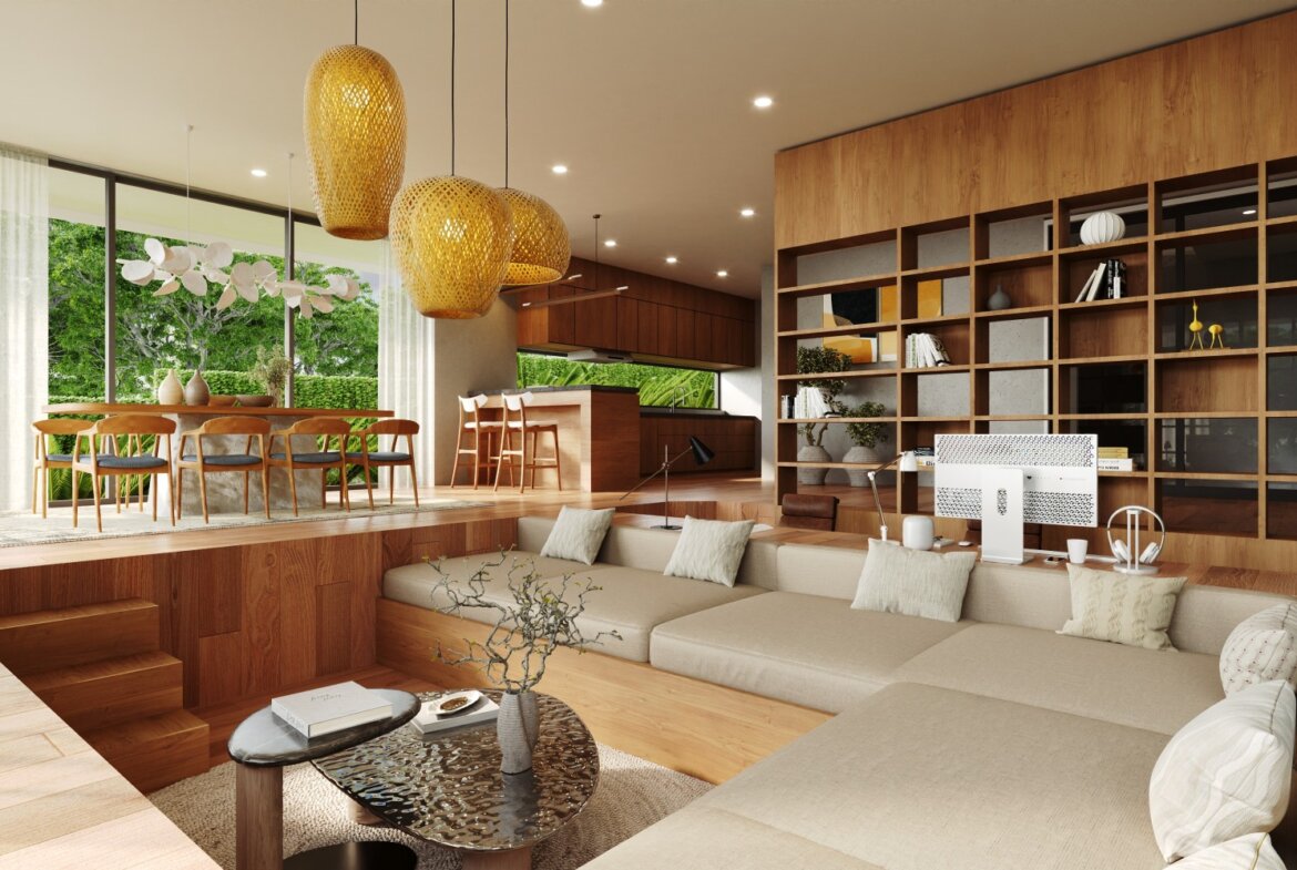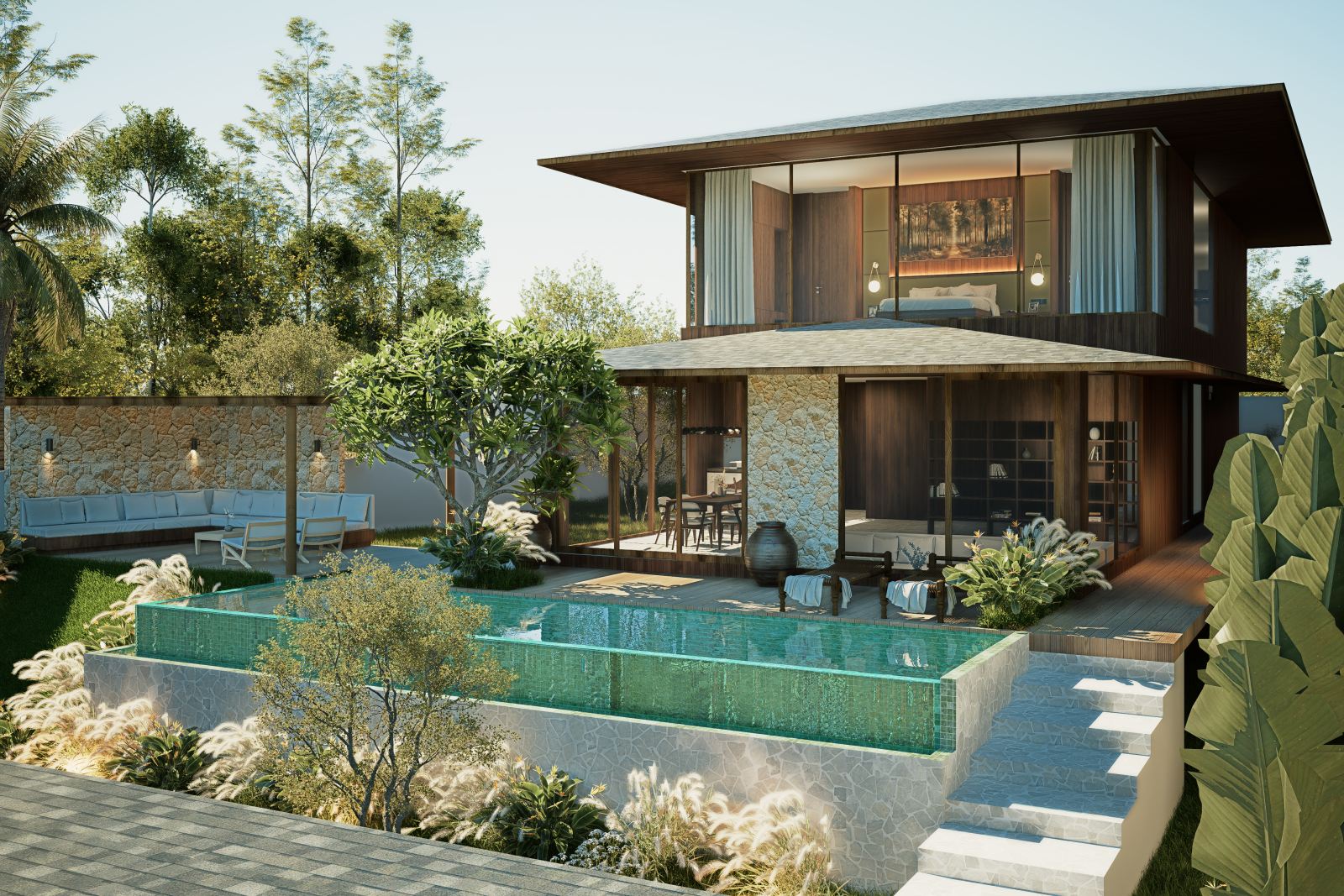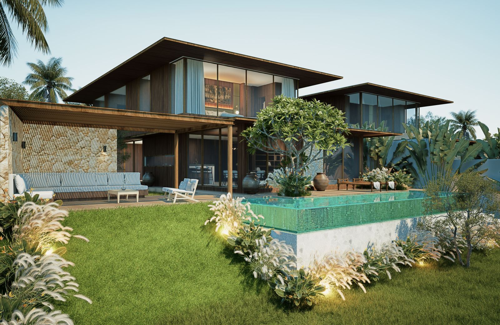 The villa features spacious open-plan living areas, a sleek modern kitchen, and floor-to-ceiling windows that invite abundant natural light and provide serene views of the lush surroundings. Each bedroom is thoughtfully designed with warm wooden accents, ample storage, and ensuite bathrooms for ultimate privacy and convenience.