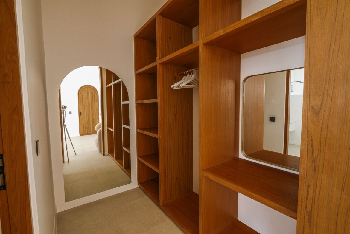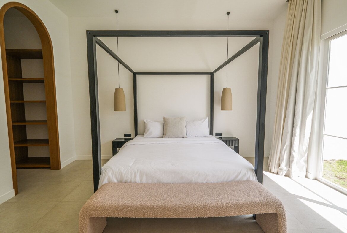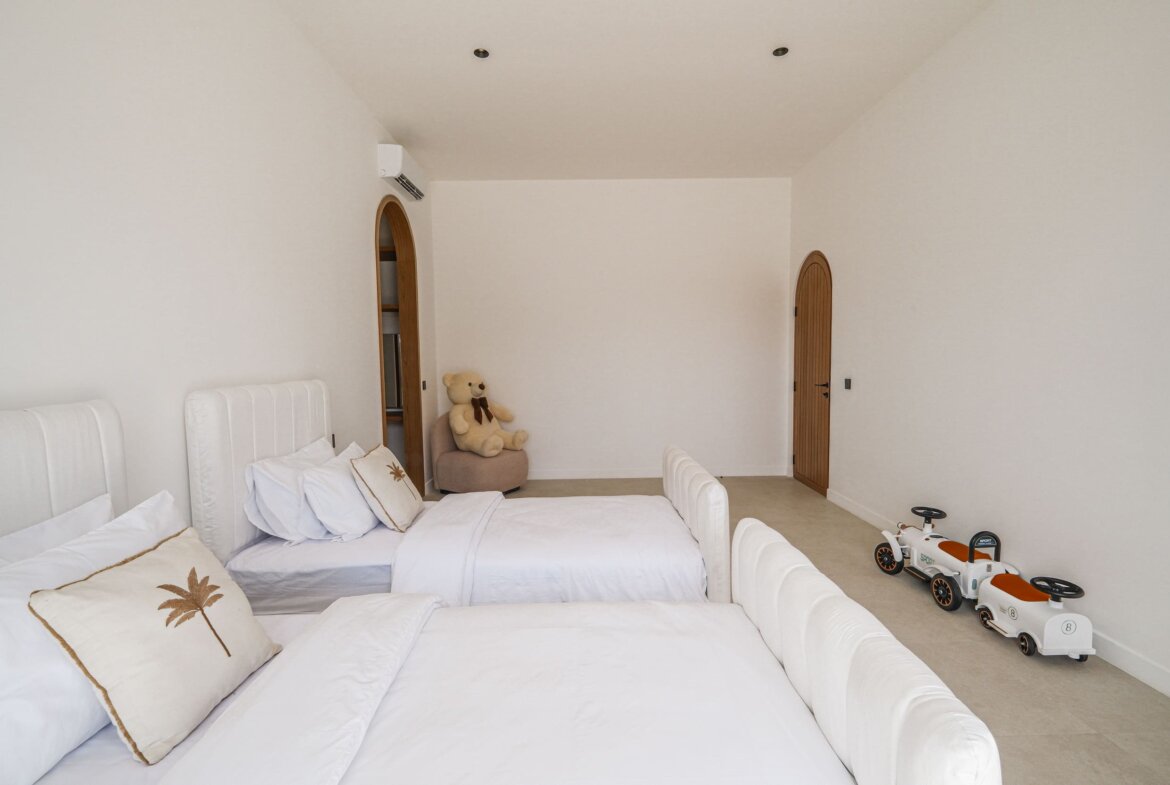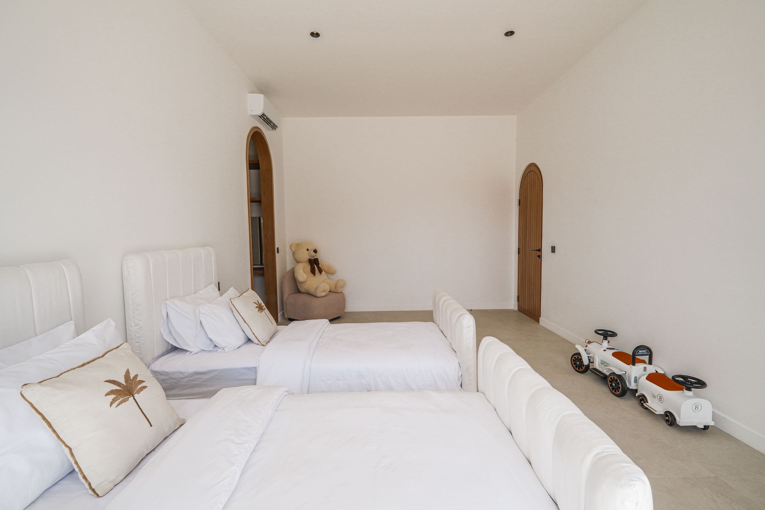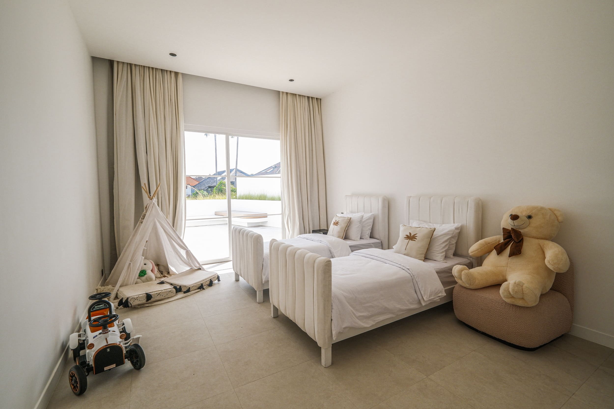 Built on 450 sqm of land with 500 sqm of well-designed living space, the villa offers four generously sized bedrooms, each with its own en-suite bathroom. An open-plan living and dining area connected to a modern kitchen. A versatile bonus room adds extra functionality — perfect for a home office, gym, or family lounge. Outdoors, a 12-meter swimming pool invites relaxation, surrounded by lush greenery and a private patio. The villa also features a laundry area, staff quarters, and covered parking for two vehicles.