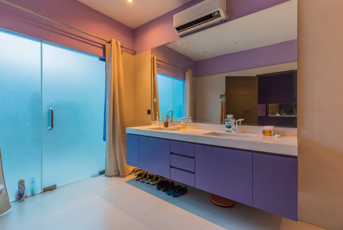 Set on a generous 750 sqm of land with a 201 sqm building footprint, the property blends comfort with investment potential, making it ideal as a private residence or an income-generating rental. The villa comprises a detached guest bedroom with its own ensuite, a second bedroom with an ensuite and walk-in dressing area, and a luxurious master suite featuring a private office, walk-in wardrobe, and ensuite bathroom. Additional highlights include a spacious enclosed living room for year-round comfort, a back kitchen, a guest powder room, and a 12 x 4 meter swimming pool perfect for relaxation. A smart home lighting system adds modern convenience, while the covered parking area with a security post ensures safety and ease.