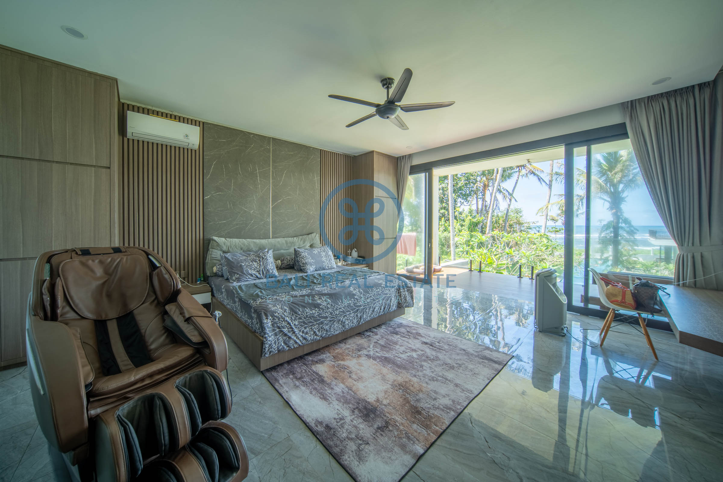 The outdoor areas create a true tropical haven, with a stunning 4 x 25 m swimming pool, meticulously landscaped gardens, and multiple tranquil lounging areas showcasing breathtaking oceanfront views.