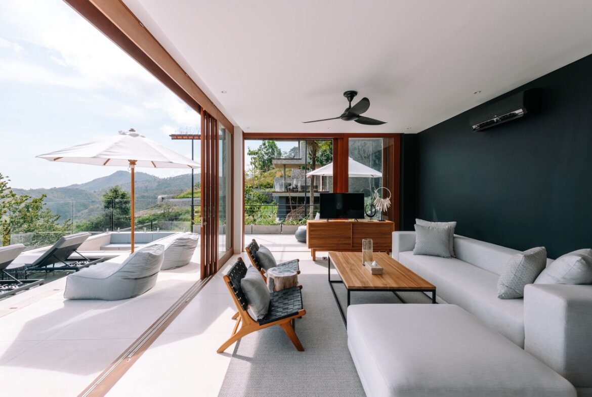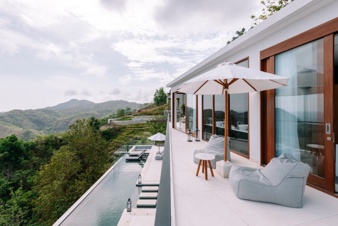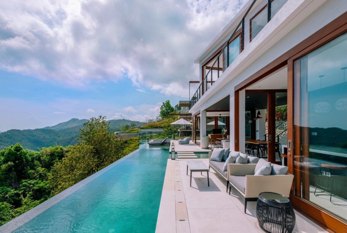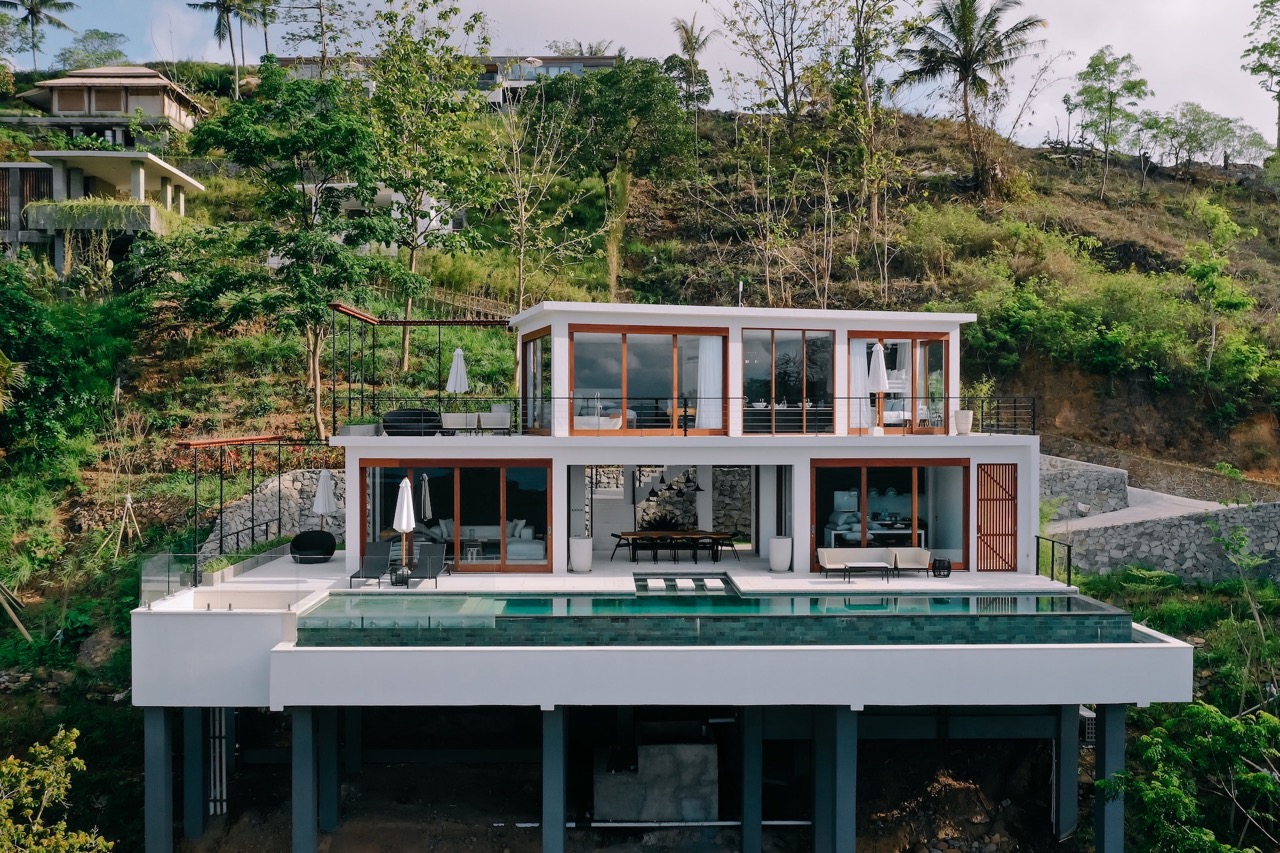 Perched on a hillside with breathtaking panoramic ocean and mountain views, this two-bedroom villa is the ultimate island escape, perfectly suited for small families or groups of friends. Set on a generous 1,171 sqm land with 275 sqm of living space, the villa is designed to combine luxury, comfort, and functionality.