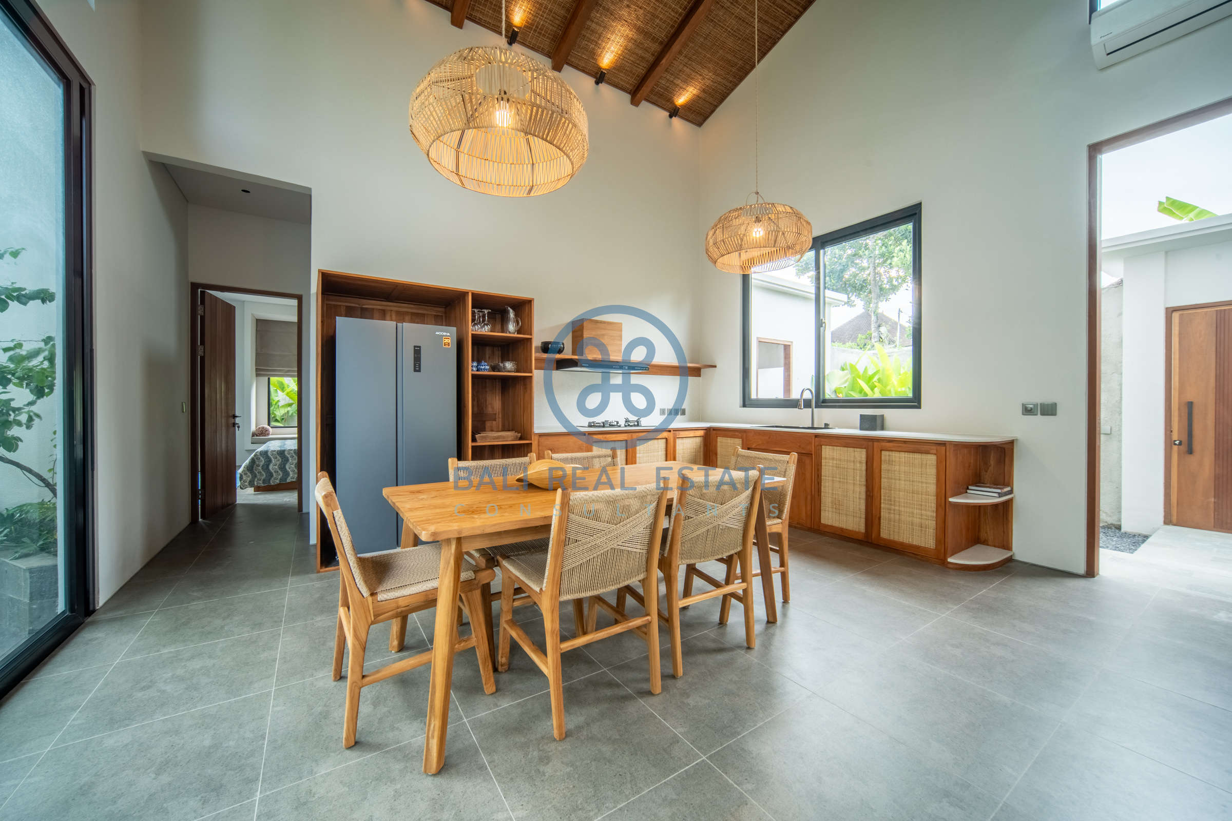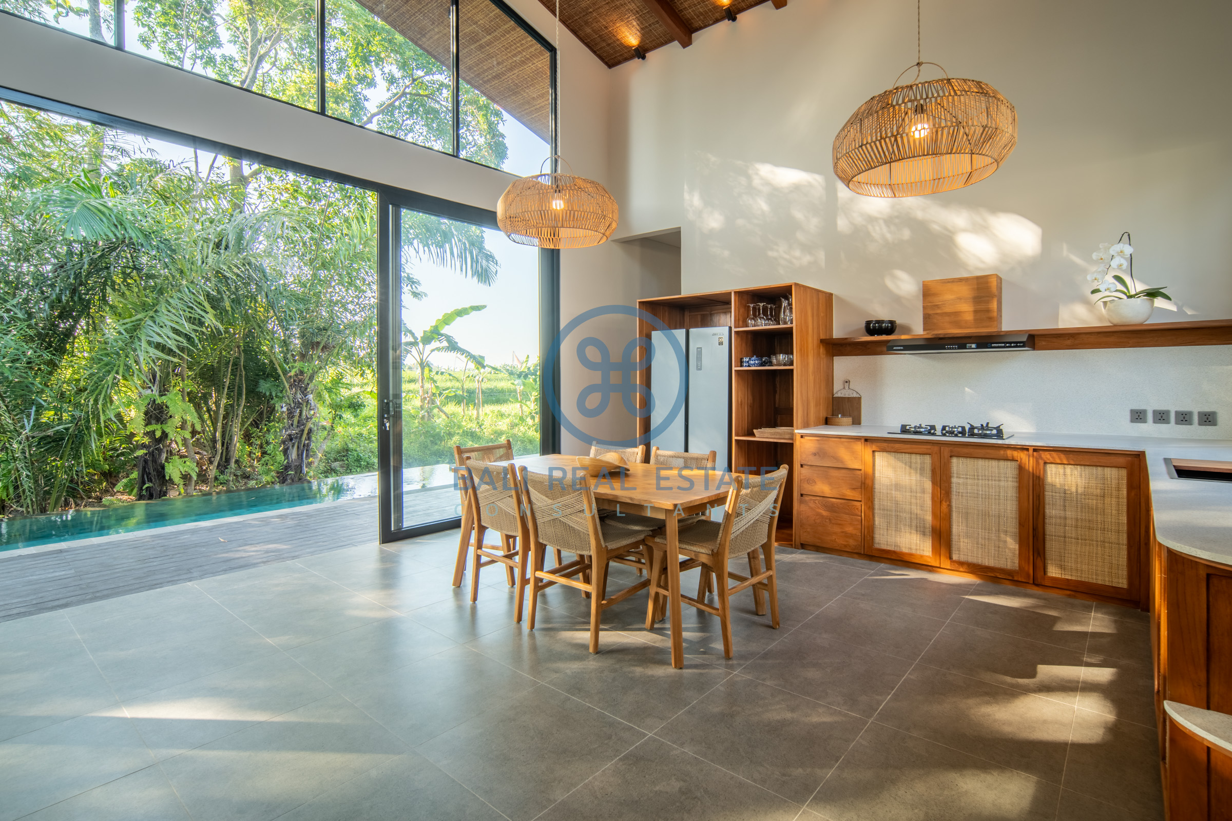 An open-plan layout ensures a seamless connection between indoor and outdoor living, inviting you to fully embrace the tropical ambiance. With high ceilings and large windows, the villa is filled with natural light, enhancing the sense of space and creating a tranquil atmosphere throughout