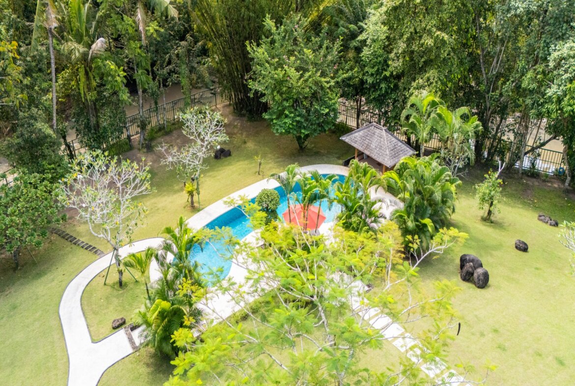 Spanning 5,000 m² of gently sloping terrain, the property features 5 unique structures, each flowing down towards a breathtaking river that curves around the western and northern edges of the land. Every part of the estate offers mesmerizing views of the river and surrounding jungle.
