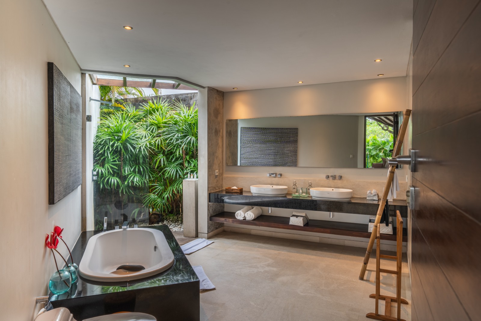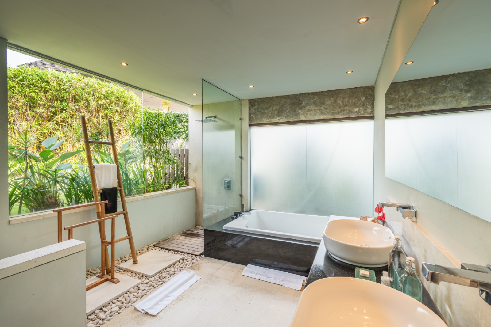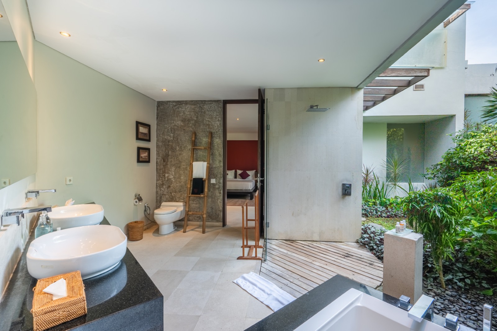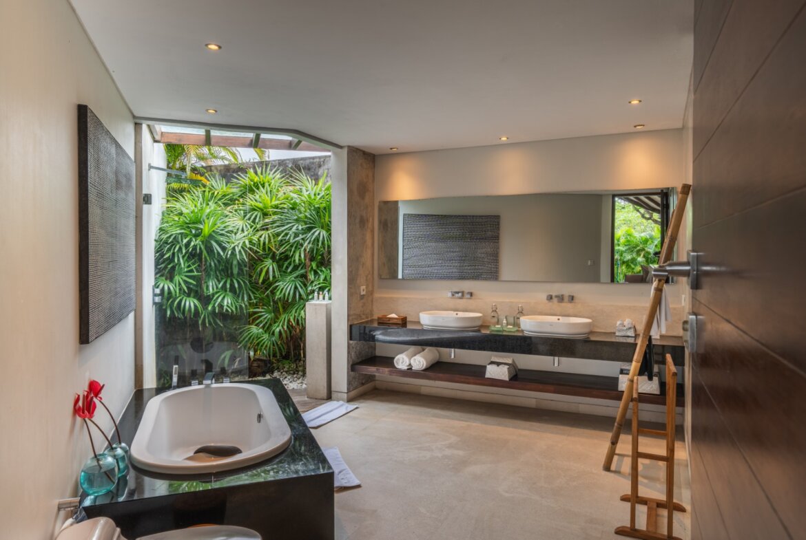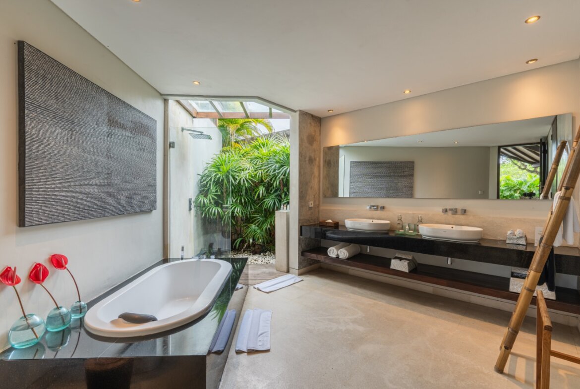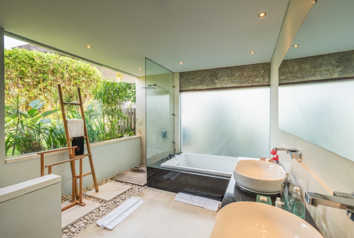 The semi-open en-suite bathrooms offer a true tropical experience, combining indoor bathtubs with outdoor rain showers enveloped by vibrant greenery. Crafted with premium materials and exceptional construction quality, the villa is built to deliver enduring elegance and long-lasting durability.