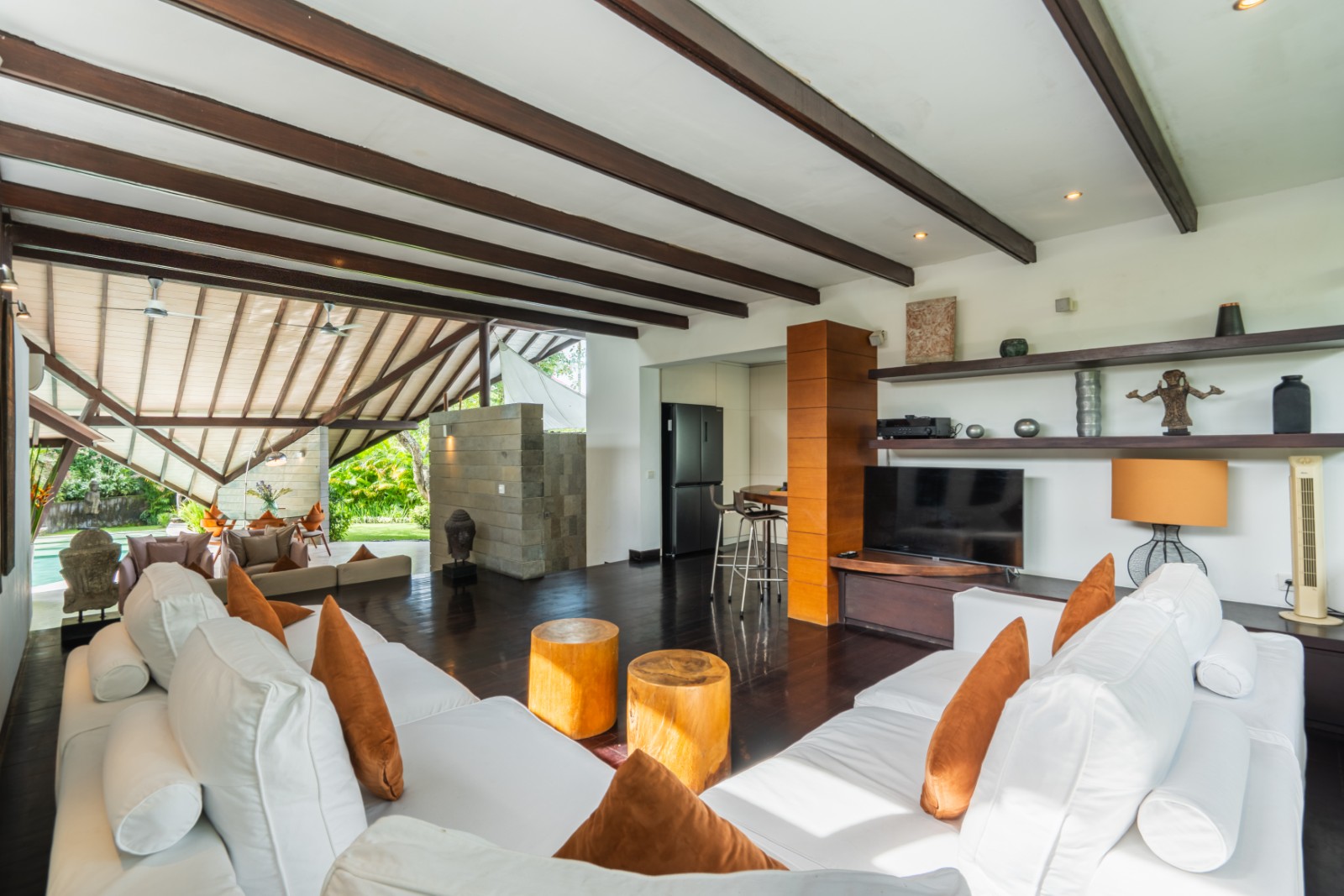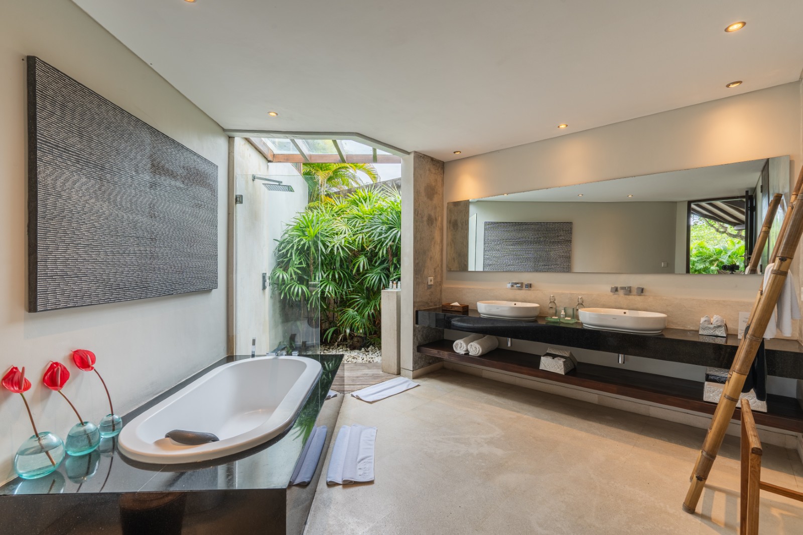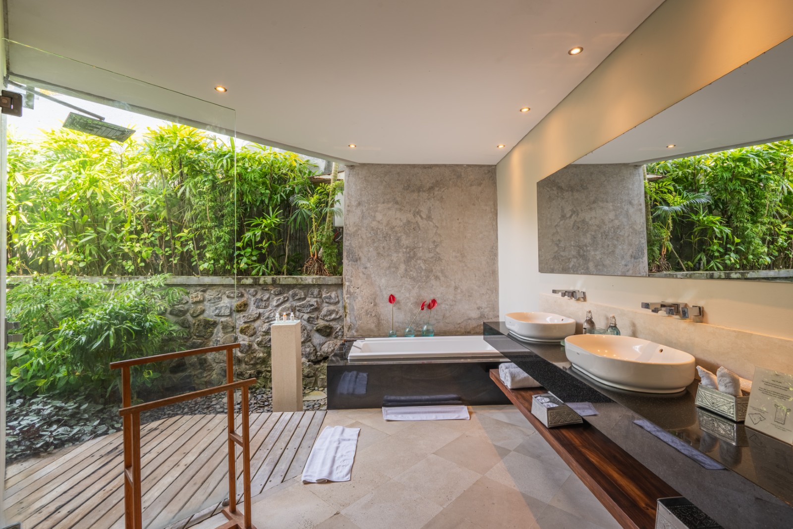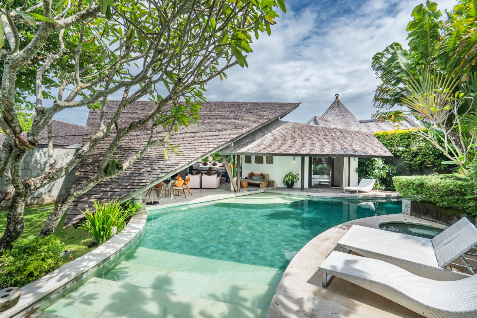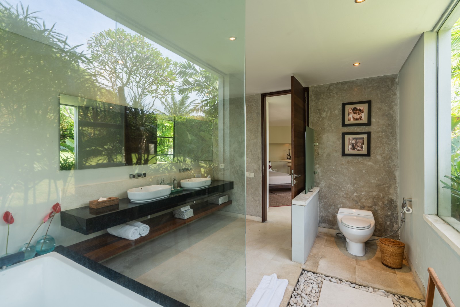 The semi-open en-suite bathrooms offer a true tropical experience, combining indoor bathtubs with outdoor rain showers enveloped by vibrant greenery. Crafted with premium materials and exceptional construction quality, the villa is built to deliver enduring elegance and long-lasting durability.