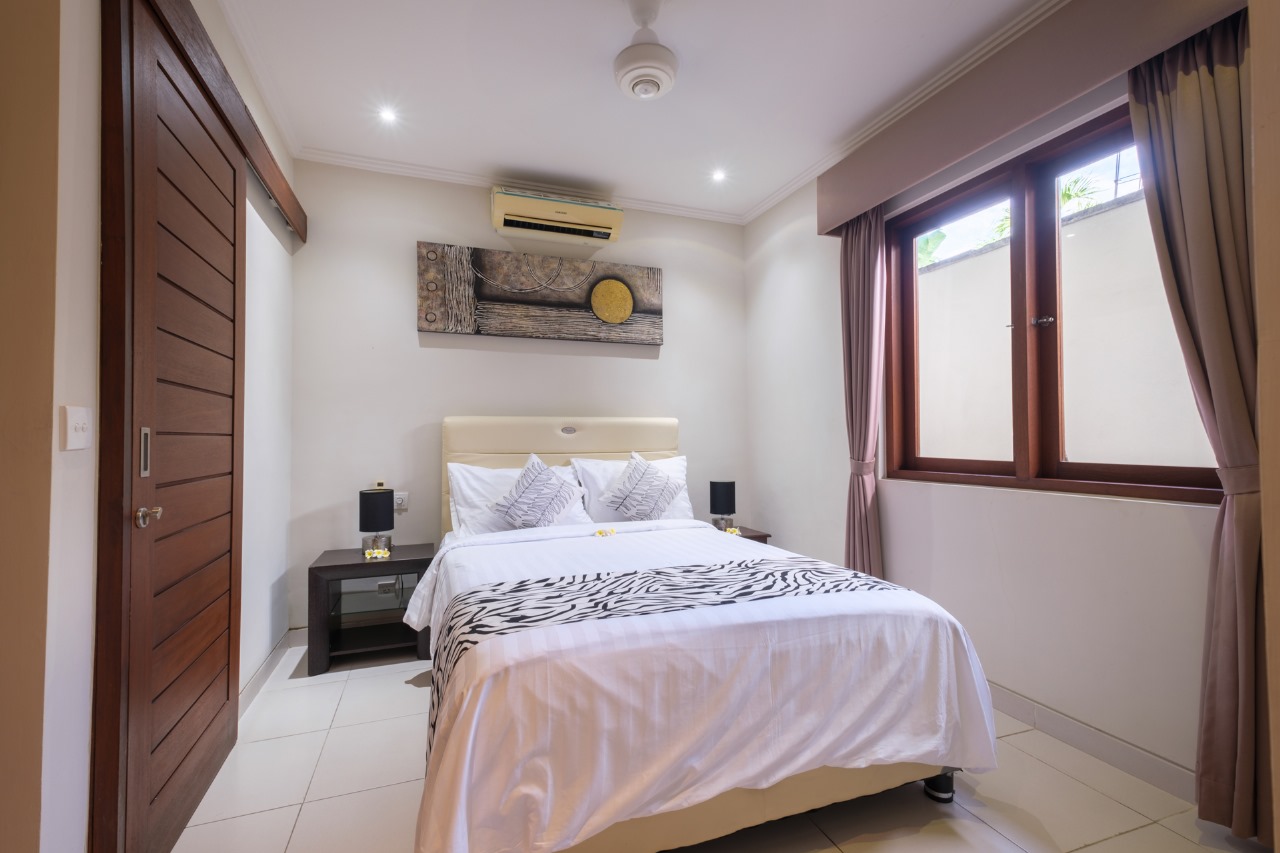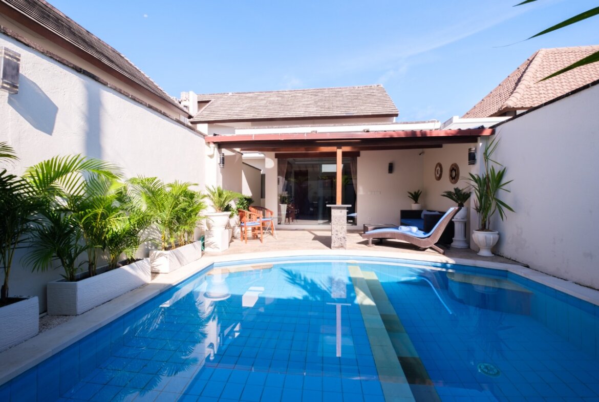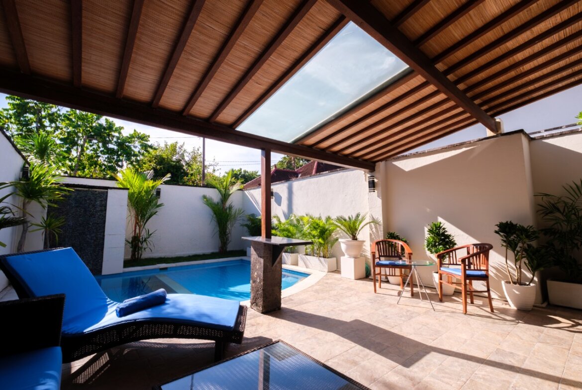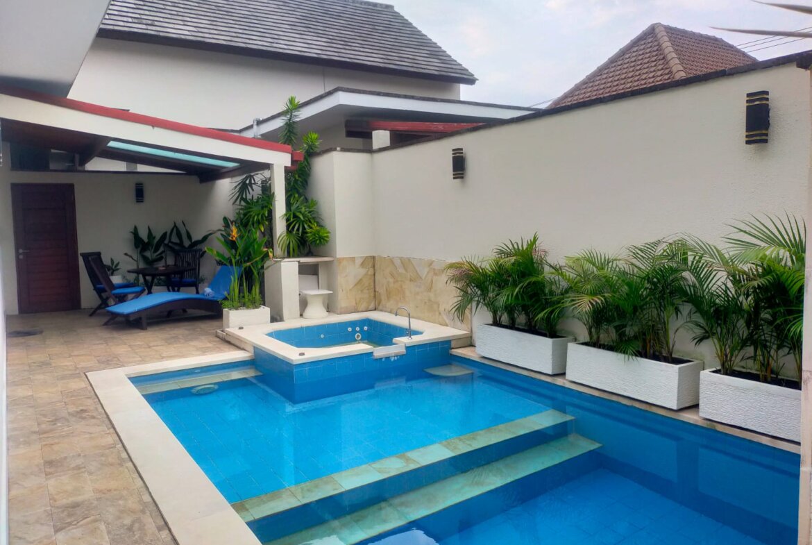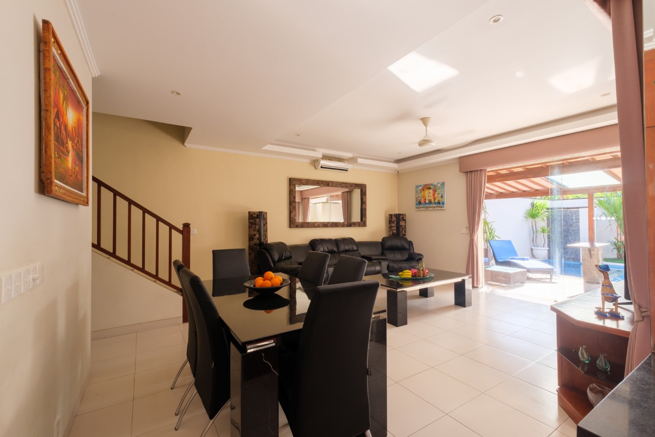 Each villa features enclosed living spaces that create a cozy, homey feel—perfect for those who appreciate a quieter and more private environment. The interiors carry a classic Bali-home character: clean, functional, slightly dated yet well-kept, giving plenty of room for personal touches or future upgrades. Each villa also comes with its own private swimming pool, providing a peaceful space to relax and unwind.