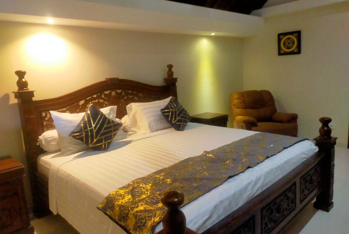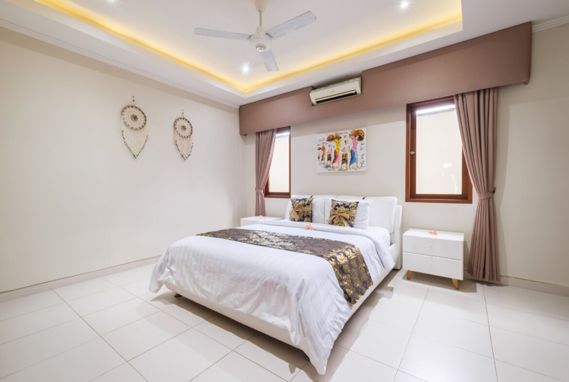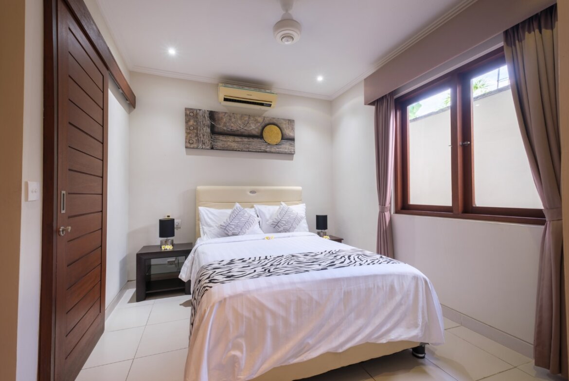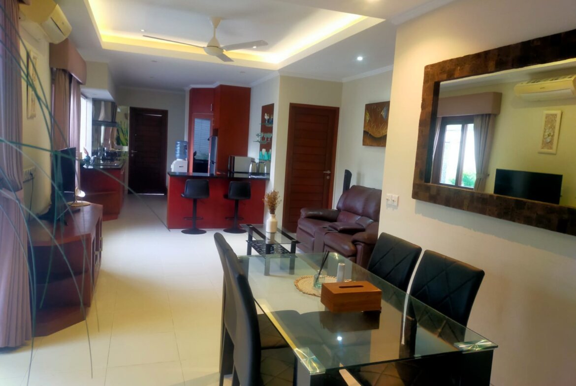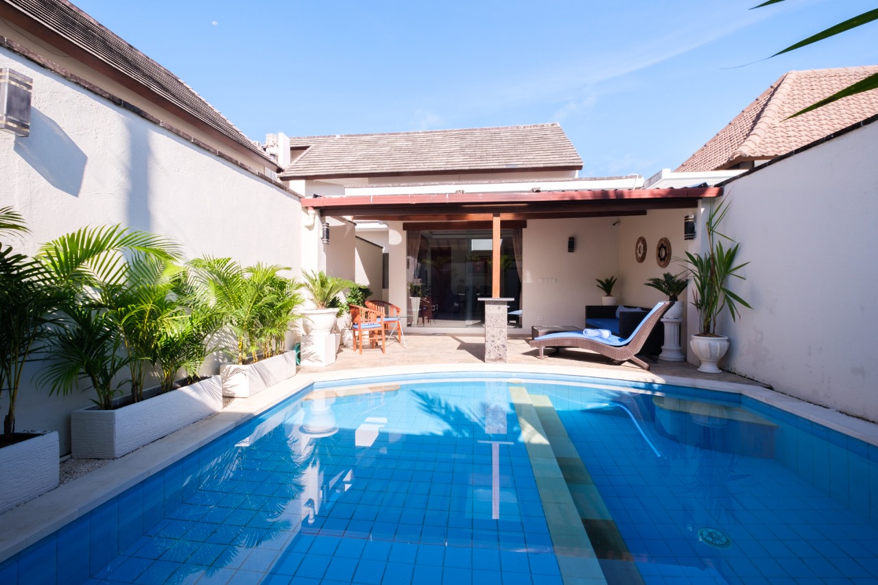 Each villa features enclosed living spaces that create a cozy, homey feel—perfect for those who appreciate a quieter and more private environment. The interiors carry a classic Bali-home character: clean, functional, slightly dated yet well-kept, giving plenty of room for personal touches or future upgrades. Each villa also comes with its own private swimming pool, providing a peaceful space to relax and unwind.
