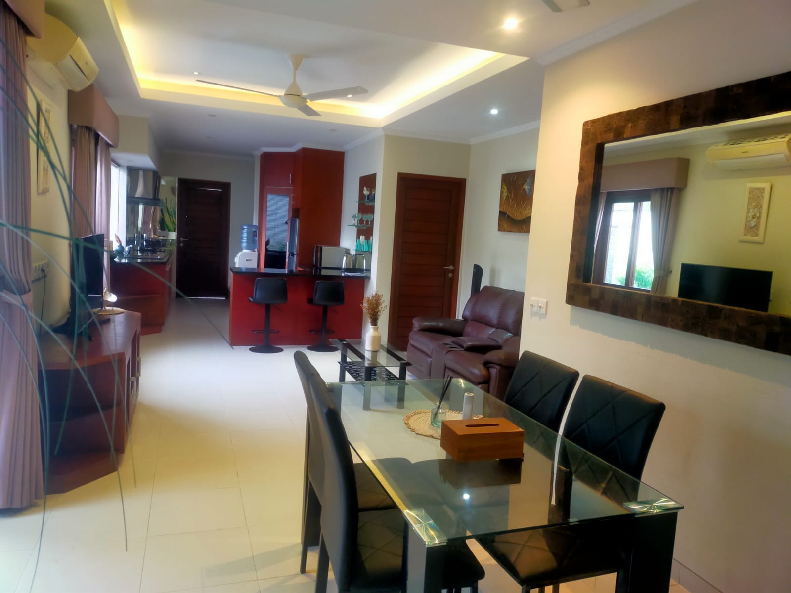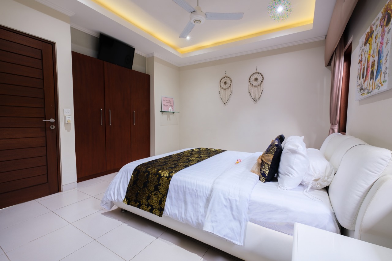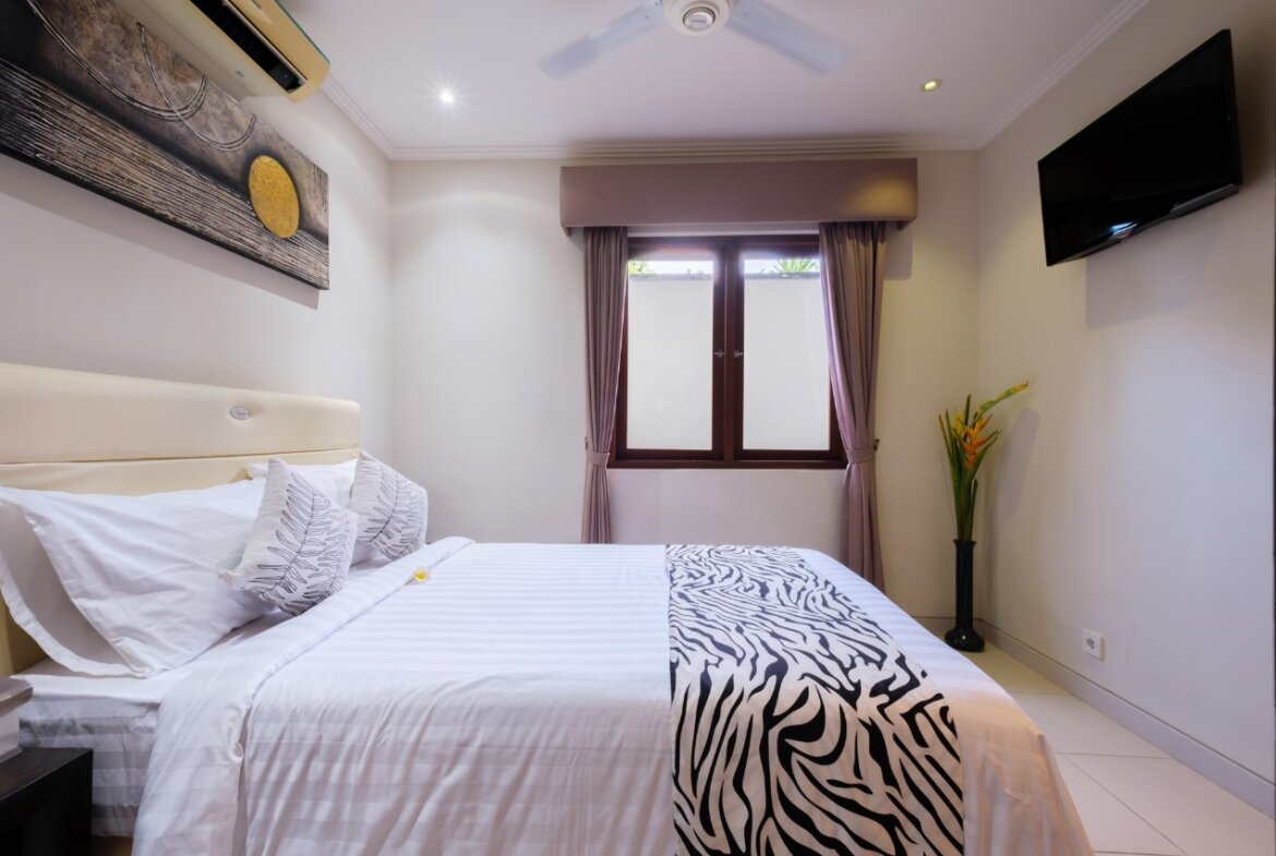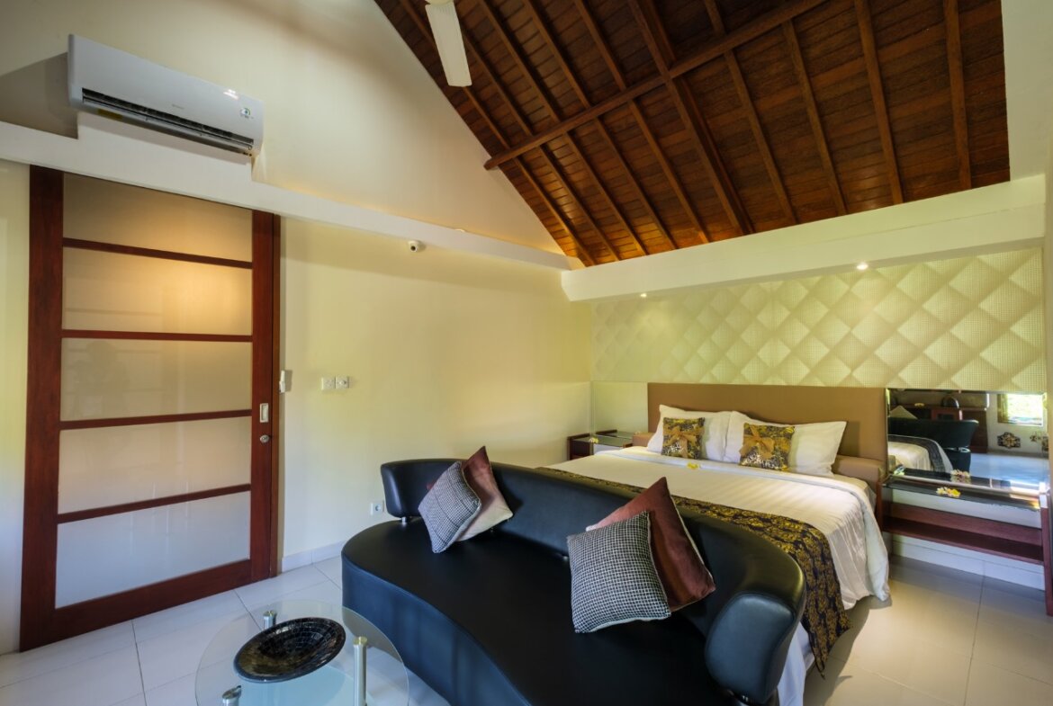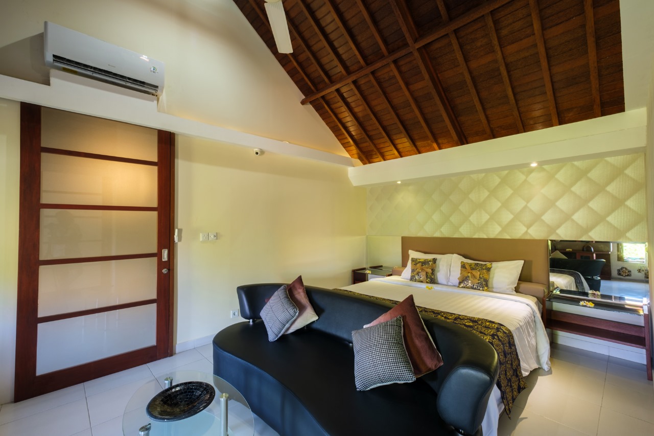 Each villa features enclosed living spaces that create a cozy, homey feel—perfect for those who appreciate a quieter and more private environment. The interiors carry a classic Bali-home character: clean, functional, slightly dated yet well-kept, giving plenty of room for personal touches or future upgrades. Each villa also comes with its own private swimming pool, providing a peaceful space to relax and unwind.